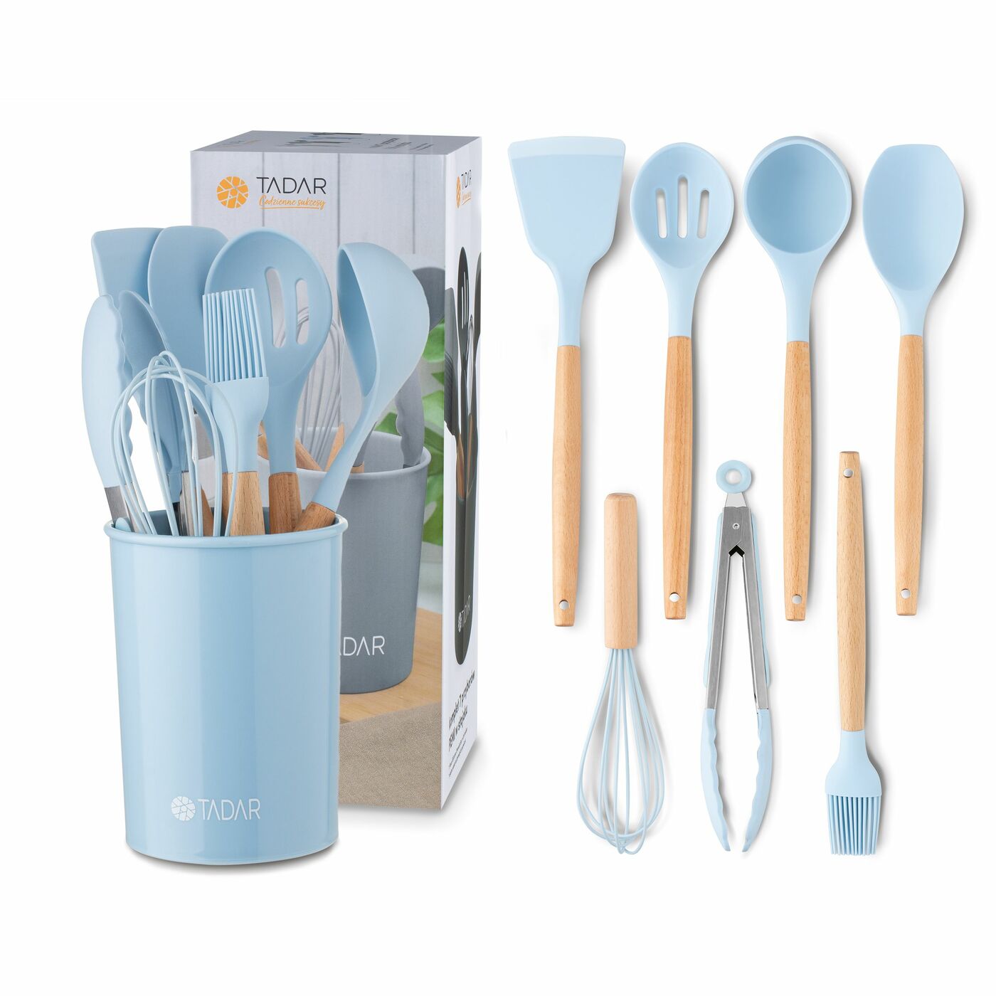 Набір із 7 кухонних аксесуарів Silico Pemi має підставку. Набір утримується в узгодженому кольорі, що відповідає світло -синього силікону. Крім того, посуд має бамбукові ручки з отвором. Таким чином, ви можете зберігати їх у прикріпленій підставці або повісити на кухонні перила. Ви можете встановити всю конюшню на прилавку. Це завжди може бути у вас під рукою, коли ви готуєте, обсмажуєте або запікаєте. Це також буде корисно при подачі страв та десертів. Силіконові закінчення стійкі до проникнення бруду, знебарвлення та ароматів. Вони також можуть витримати температуру від -20 до 220 градусів С. Вони не містять токсичних речовин і призначені для безпечного контакту з їжею. Силікон також змушує вас безпечно використовувати їх у антипригарних стравах. Зрештою, ви можете легко мити всі сині кухонні аксесуари з колекції Pemi. На домашній кухні вони залишаться роками! , - Діаметр на відкритому повітрі: 12 см