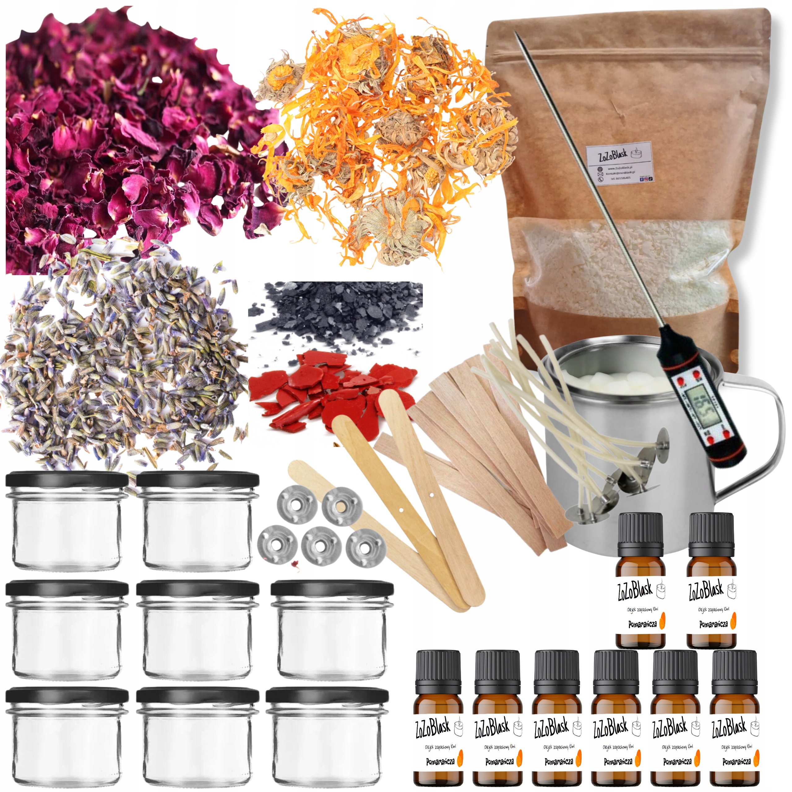 НАБІР ДЛЯ ВИГОТОВЛЕННЯ СОЄВИХ СВІЧОК своїми руками, 8 предметів від ZoZoBlask