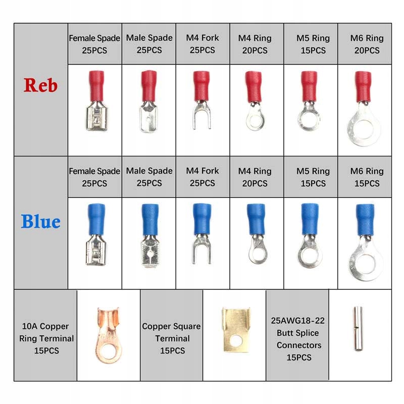 Червоний: AWG 22-18 підходить для дроту/кабелю 0,5-1,5 мм²