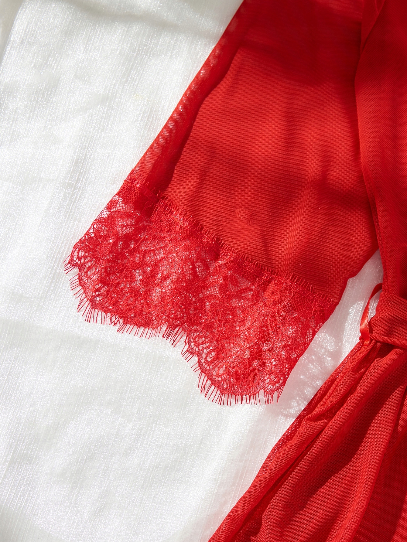 Суттєвий набір нижньої білизни, який поєднує делікатність мережива з романтичним стилем. Ідеальний вибір для вечорів, сповнених елегантності та спокусливої чарівності. Набір включає в себе сутичку, халат і ремінь - все в одному, щоб створити повний вигляд.