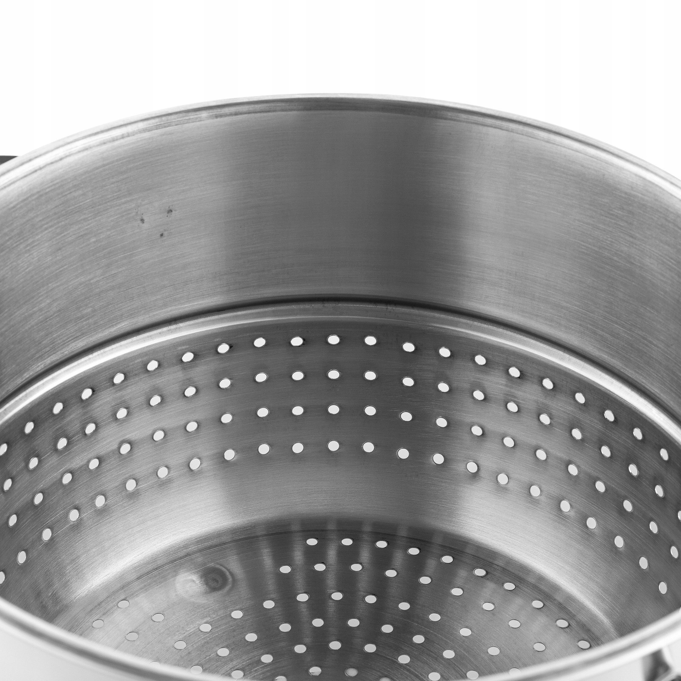 Соковижималка об'ємом 8 л виготовлена з міцної нержавіючої сталі, стійкої до механічних пошкоджень. Посудина складається з горщика розміром 26,5 х 12 см, горщика розміром 26,5 х 16 см, пароварки розміром 26 х 16 см і скляної кришки.