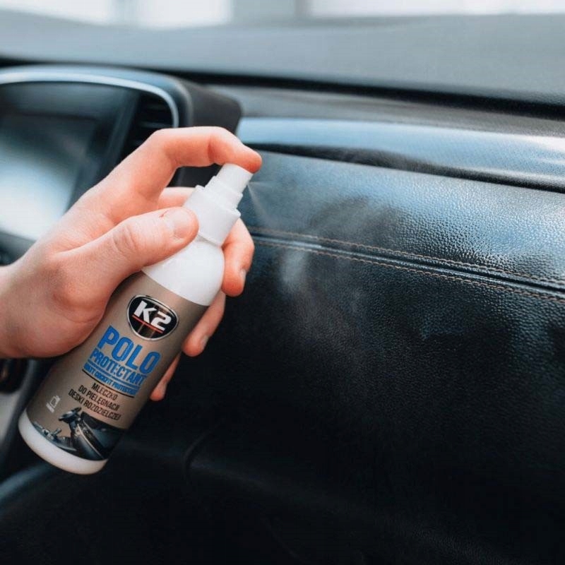 K2 Polo Protectant Mat - молочко для кабіни, яке очищає, освіжає та захищає пластикові елементи салону автомобіля, залишаючи елегантне матове покриття без відблисків. Завдяки вмісту УФ-фільтрів захищає поверхні від вицвітання, розтріскування та старіння під впливом сонця. Препарат ідеально підходить для приладової панелі, дверних панелей або центральної консолі, повертаючи їм природний вигляд без штучного блиску. Це ідеальне рішення для людей, які цінують тонку естетику та функціональність.