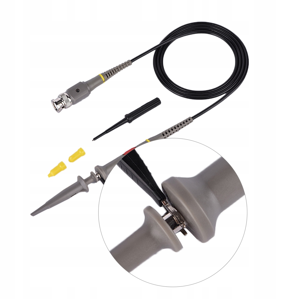 - Цей пробник осцилографа є високоякісним випробувальним обладнанням, створеним, щоб зробити зондування та вимірювання набагато легшим завданням. Крім того, у цьому зонді використовується заземлюючий дріт для продовження терміну служби та забезпечення надійного контакту.