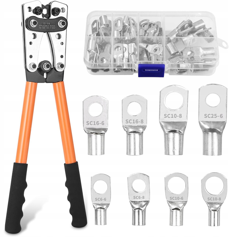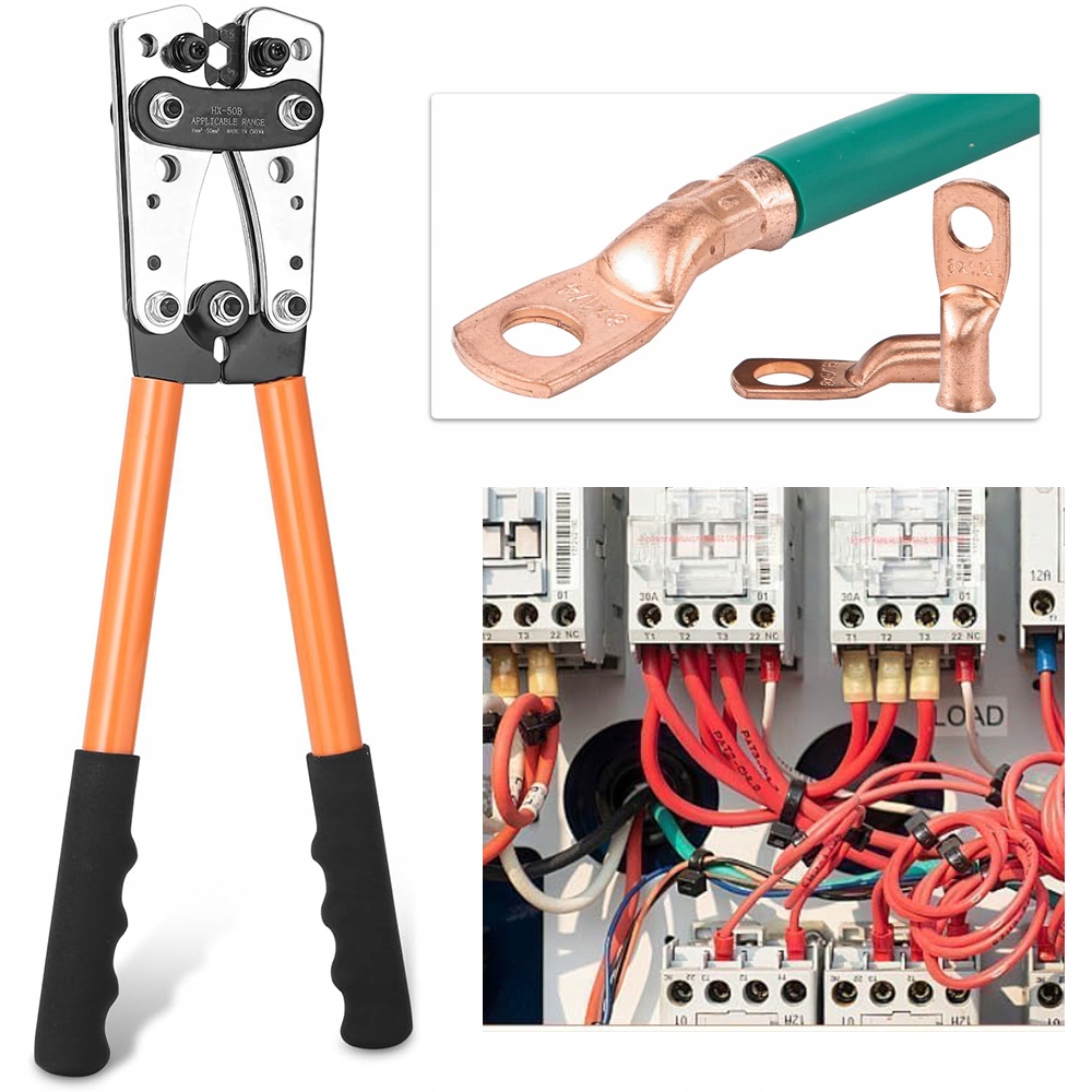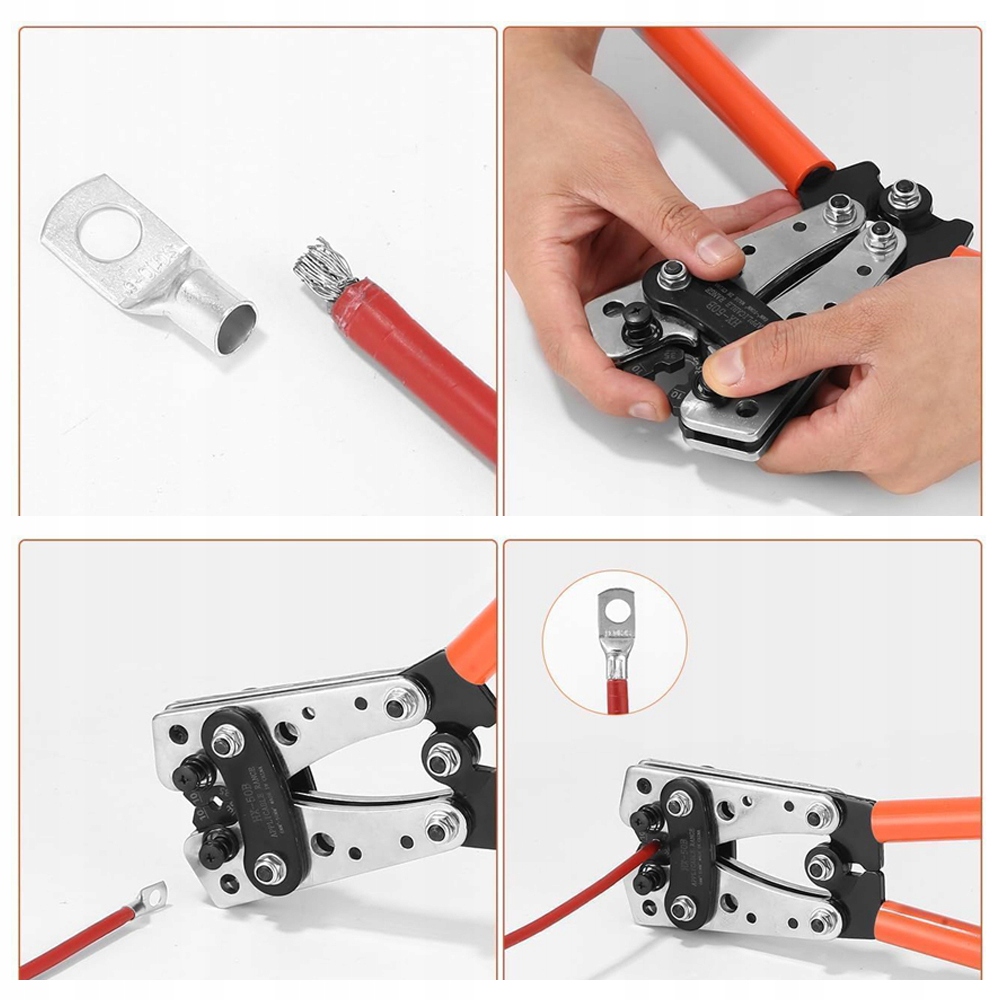 Наші щипці підходять для дроту розміром від 6 до 50 мм² (6/10/16/25/35/50). мм²). Цей універсальний інструмент позбавляє від необхідності визначати довжину кабелю. Його легко використовувати навіть для початківців.