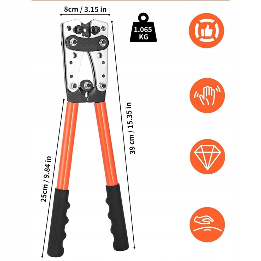 Наші обжимки мають ергономічна ручка для максимального комфорту та меншої втоми рук. Довжина 10 дюймів (25 см) дозволяє легко тримати та використовувати. Вони забезпечують міцний захват, що дозволяє легко та надійно затиснути.