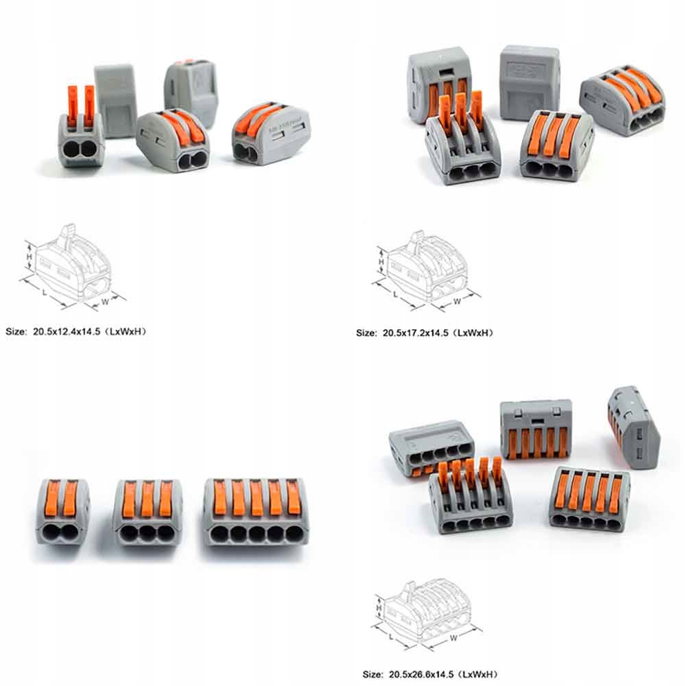 Швидкі роз'єми електричних проводів - це професійне рішення для інсталяторів, які цінують час та зручність. Завдяки інноваційному дизайну важеля, підключення та відключення кабелів надзвичайно простий і швидкий, без необхідності скрутити або обгортати стрічку.