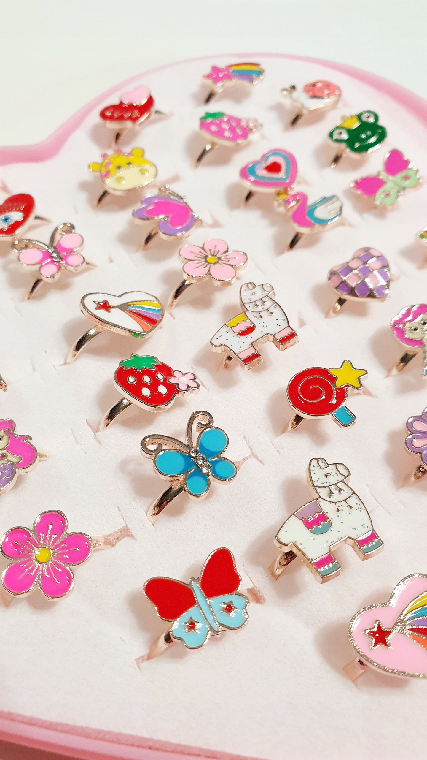 Набір каблучок для дівчинки, 36 кілець, футляр МЕТАЛЕВИЙ