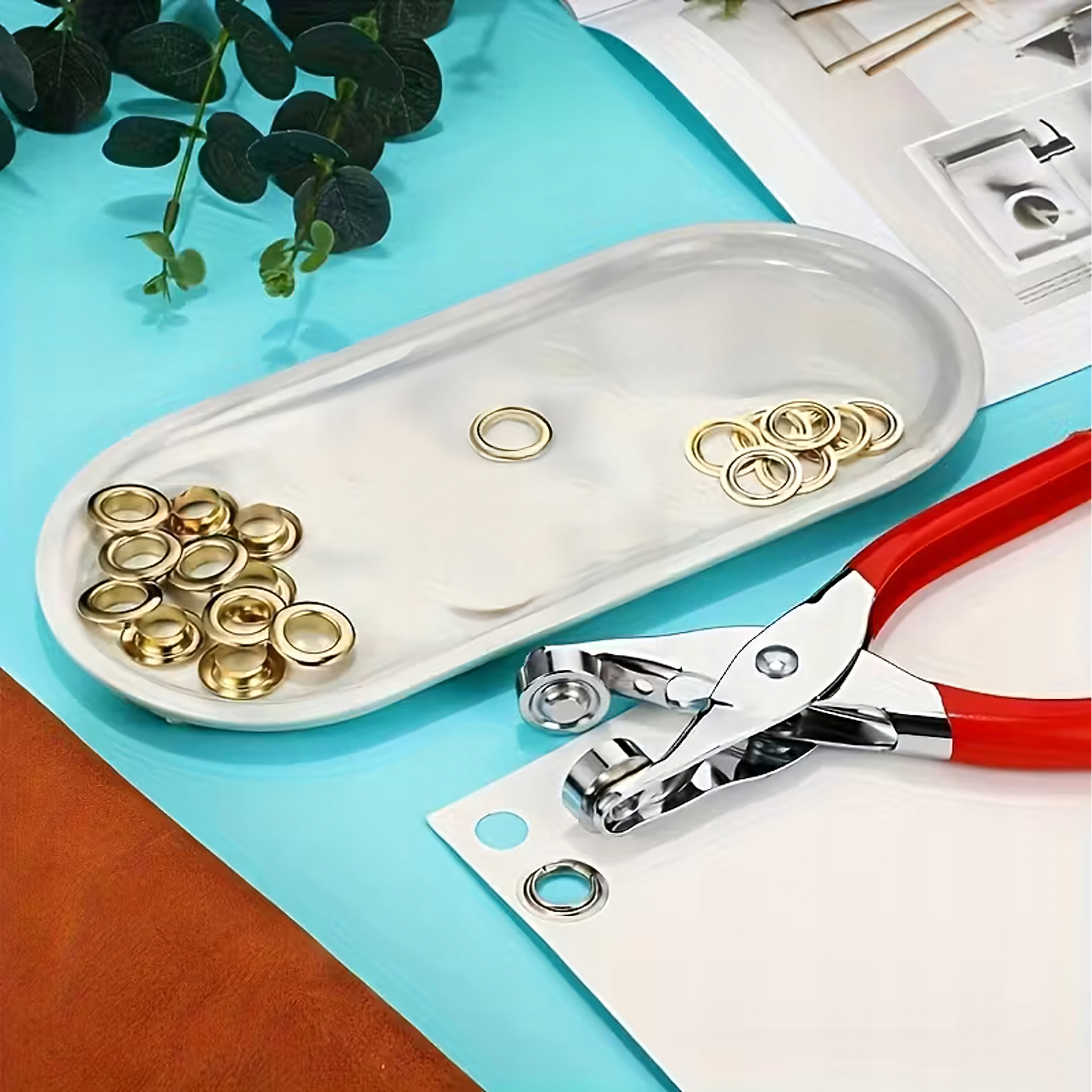📦 Комплект вміст:щипці + 100 люверсів (золото)