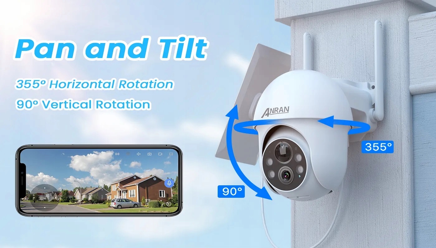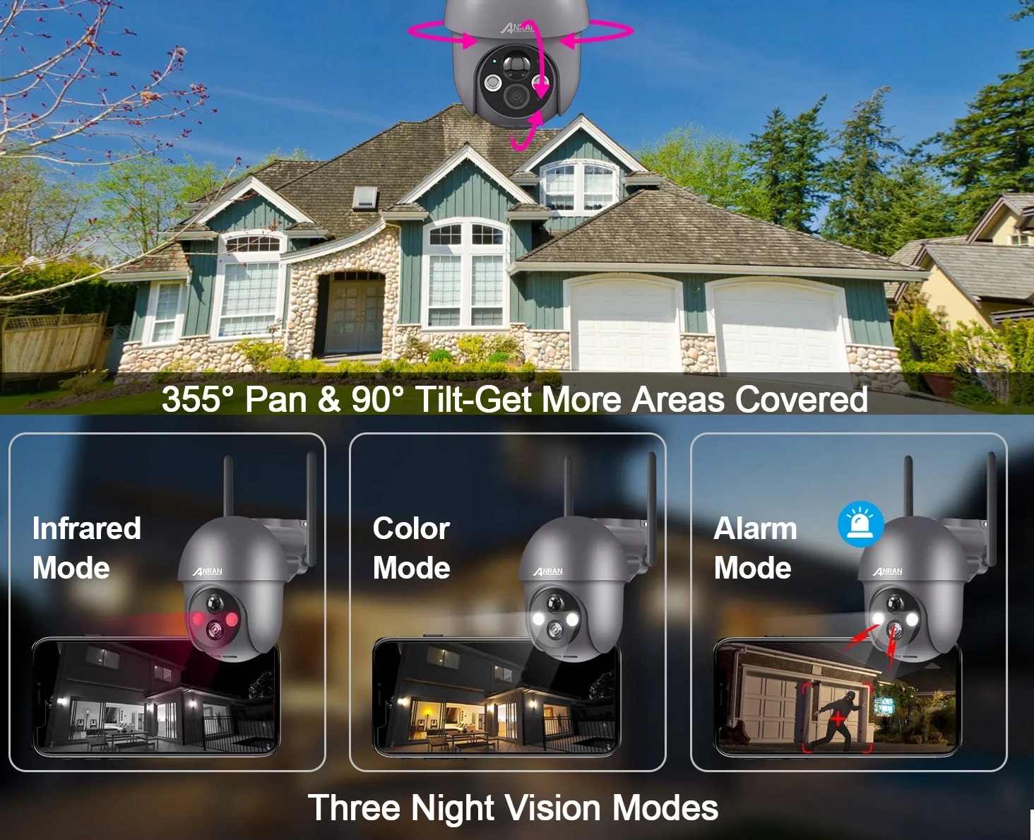Камера безпеки Анрана має роздільну здатність 2k (2304H x 1296V) і може забезпечити найвищу якість виражених HD -зображень та фільмів, незалежно від погоди. Ви можете віддалено керувати обертанням камери на 180 ° горизонтально в додатку Eseecluud (завантажте в App Store або Google Play), додавши пристрій для розширення діапазону зору.