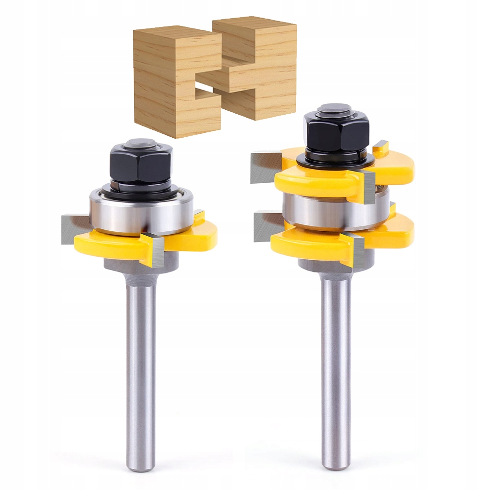 Set of bits for a router with tongue and groove 8 mm Mandle - 2 pieces of bits for a 3/4 "flask router, cutting depth 1/2" - shape T 3 teeth of cutting cutting of wood tool for woodworking tool digging