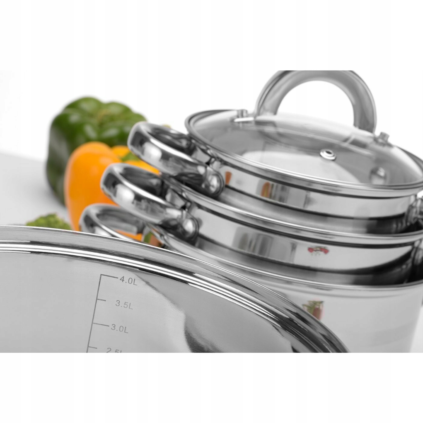 - Вісім елементів, тобто чотири каструлі з кришками, щоб гнучко адаптуватися до ваших потреб і кількості людей, для яких ви створюєте страви