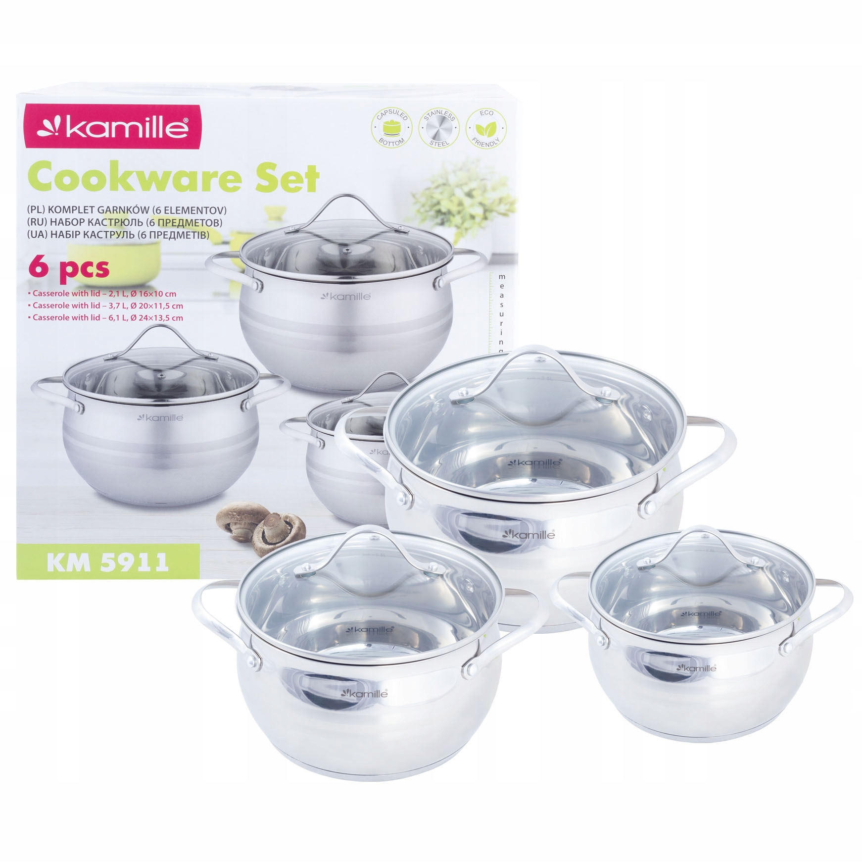 Набір каструль з нержавіючої сталі, 6 елементів, ІНДУКЦІЯ KAMILLE KM-5911