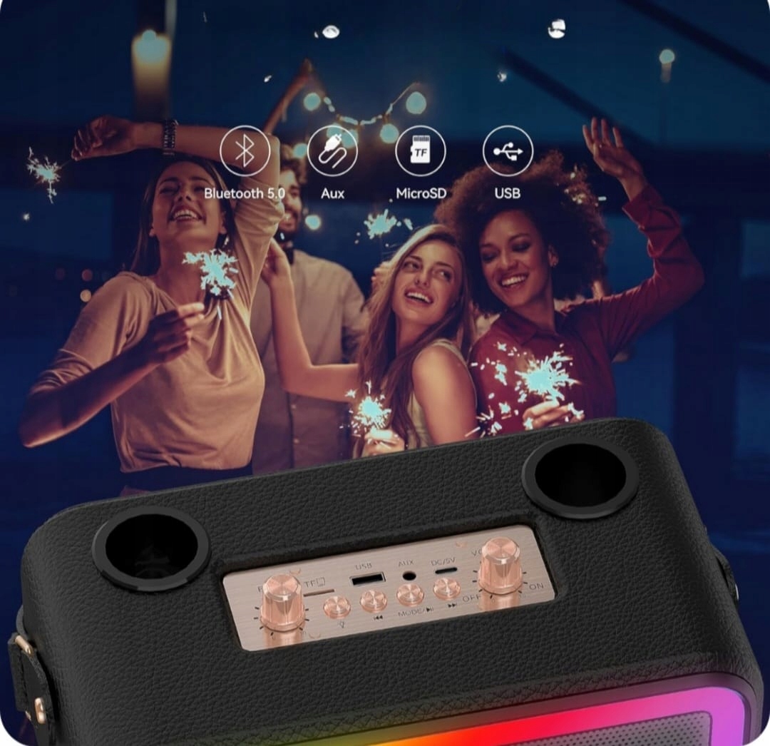 Виведіть своє караоке на абсолютно новий рівень! Ця багатофункціональна стереоколонка для караоке з двома мікрофонами забезпечить вам чудове задоволення, відмінний звук і мобільність, завдяки чому ви зможете організувати вечірку, де завгодно. Ідеально підходить для домашніх вечірок, сімейних зустрічей, багаття, барбекю та навіть професійних виступів.