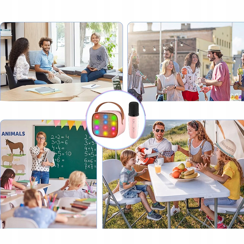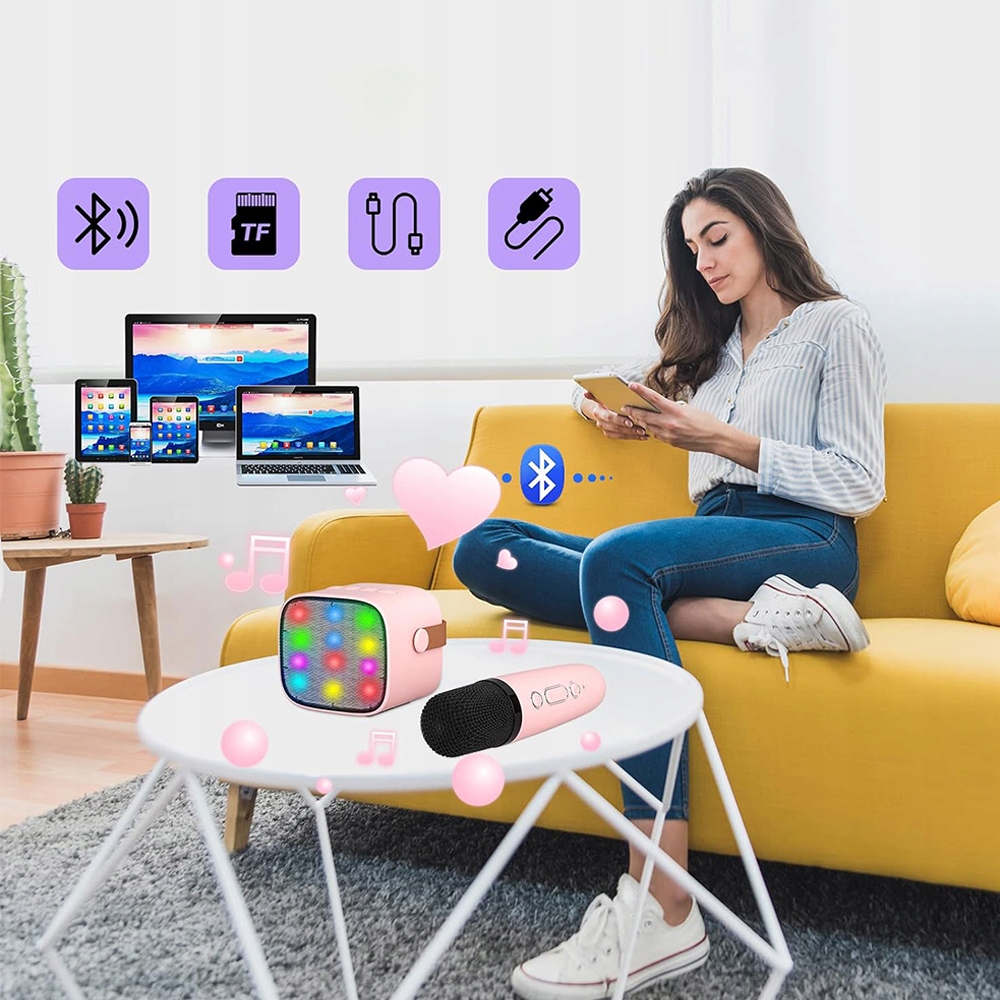 - Ідеально підходить для KTV, вечірок, зустрічей, активного відпочинку. Підтримуйте пам’ять TF з піснями у форматі MP3, співайте, тренуйтеся співати, відтворюйте музику, слухайте пісні, як вам подобається.