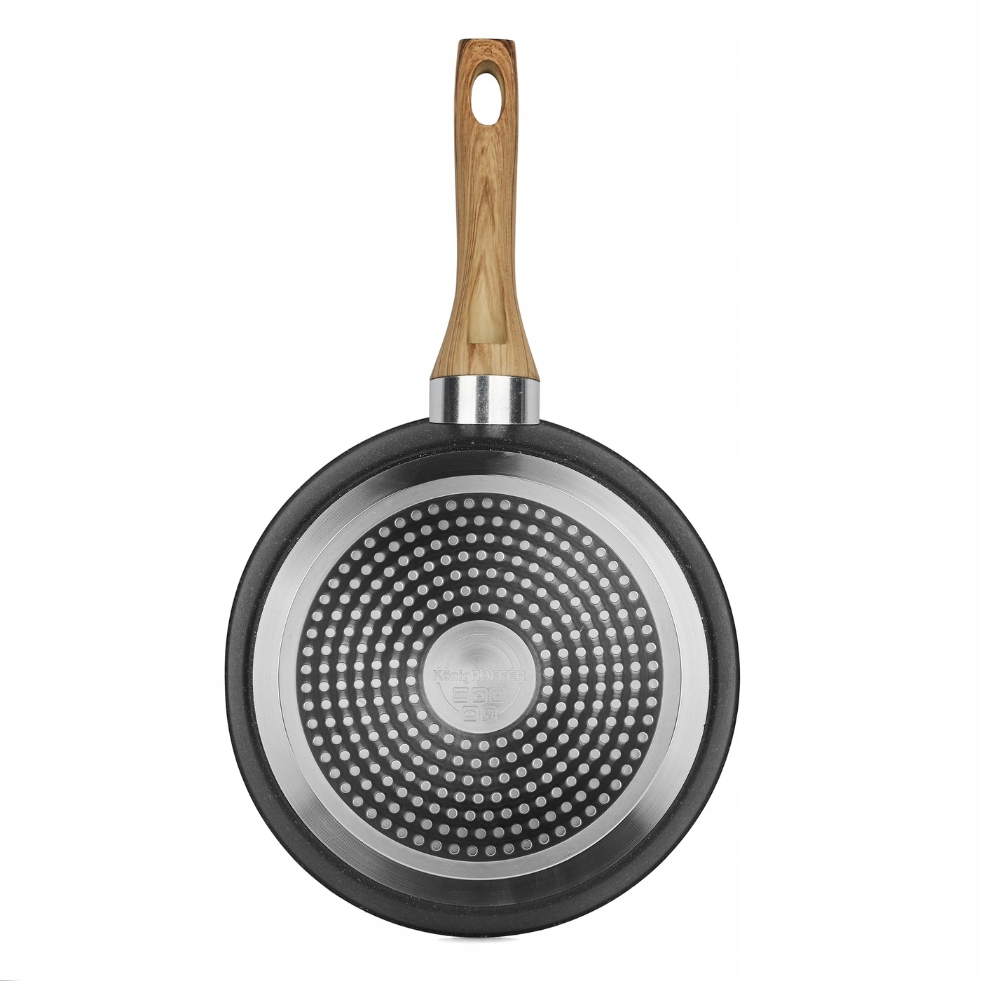 Інша інформація: - алюмінієві каструлі, вкриті антипригарним покриттям Ball Blasting з крапчастими частинками чорного граніту, - ергономічні ручки з пластику, дерев'яного типу з отвором для підвішування, прикручені , - каструлі підходять для всіх типів плит, включаючи індукційні, - скляні кришки зі сталевим бортиком і вентиляційним отвором, - для продовження терміну служби виробів рекомендується ручне миття