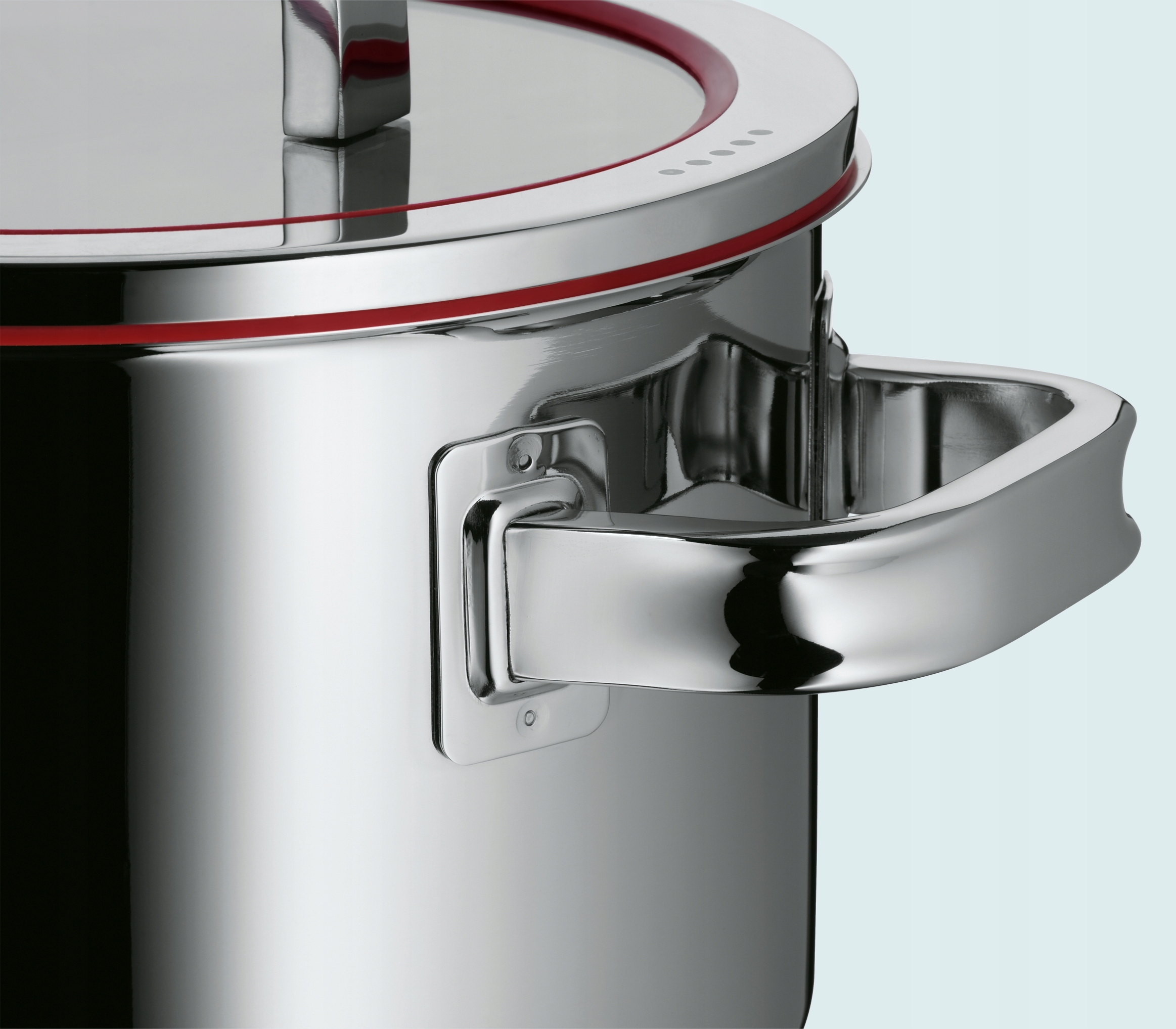 Набір горщиків WMF FUNCTION 4 RED - обмежена серія. Завдяки функціональній кришці ми можемо назавжди забути про окрему ємність для проціджування. Горщики виготовлені з нержавіючої сталіCromargan®, запатентованої сто років тому. Поєднання 18% хрому та 10% нікелю робить горщики дуже міцними та стійкими до подряпин і харчових кислот. Полірована поверхня надовго залишиться блискучою. Посуд можна безпечно мити в посудомийній машині.