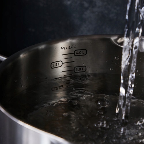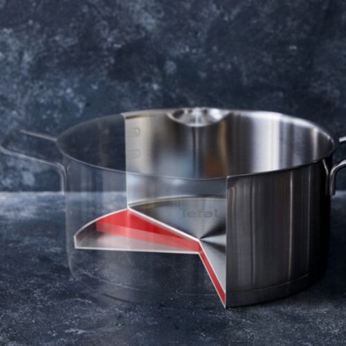 На стінці каструль Tefal Nordica є шкала, яка дозволяє точно вимірювати кількість рідини та зручно слідувати рецепту.