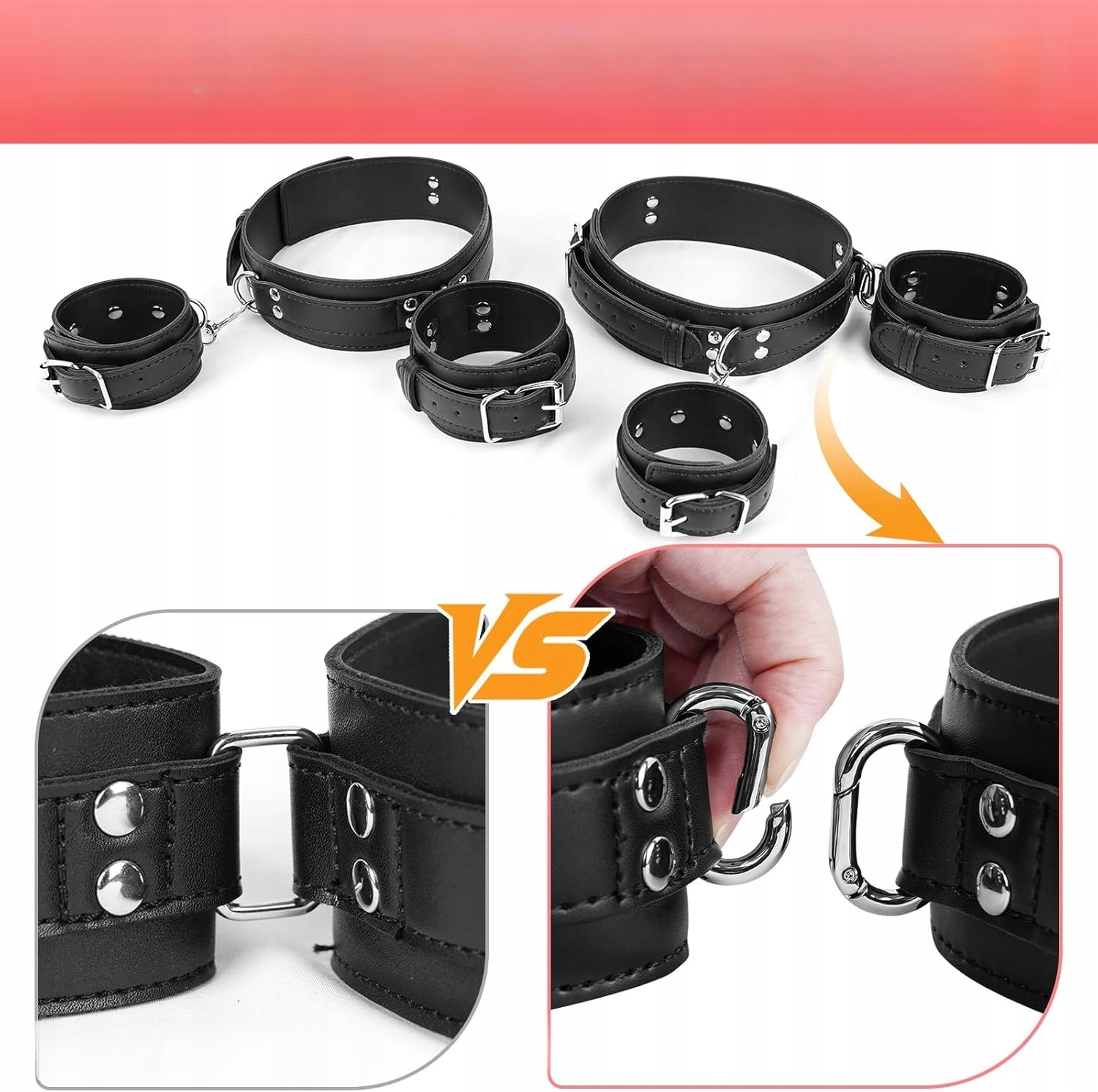 - УДОСКОНАЛЕНА МЕТАЛЕВА ПРЯЖКА: цей бандажний набір в основному використовується для рухів на колінах, сидячи та лежачи. Завдяки новому дизайну пряжки, манжети на ногах і щиколотках можна від'єднати та використовувати окремо або разом. Цей набір відкриває для вас більше розваг, дозволяючи вам і вашому партнеру відкривати нові сенсорні відчуття між змінами положення та досліджувати різні рівні зв’язування SM і садомазохістської гри.