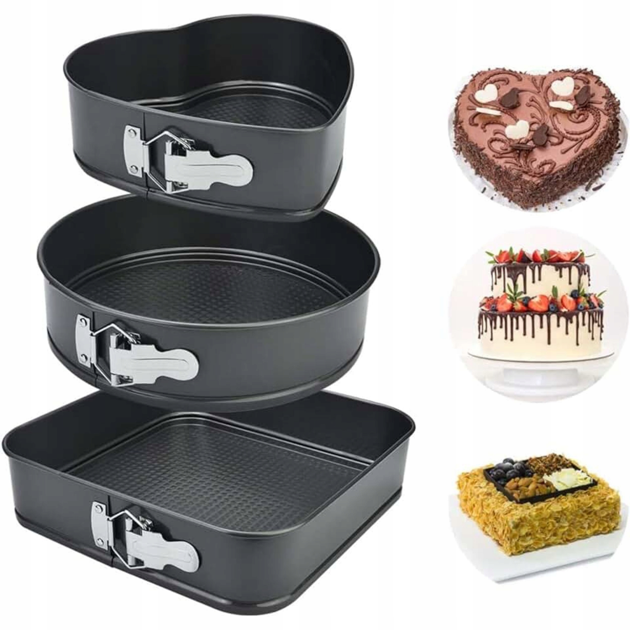 Набір з трьох унікальних форм для випікання, які ідеально підійдуть для будь-якої кухні. У набір входять три форми різної форми: сердечко, кругла і квадратна.