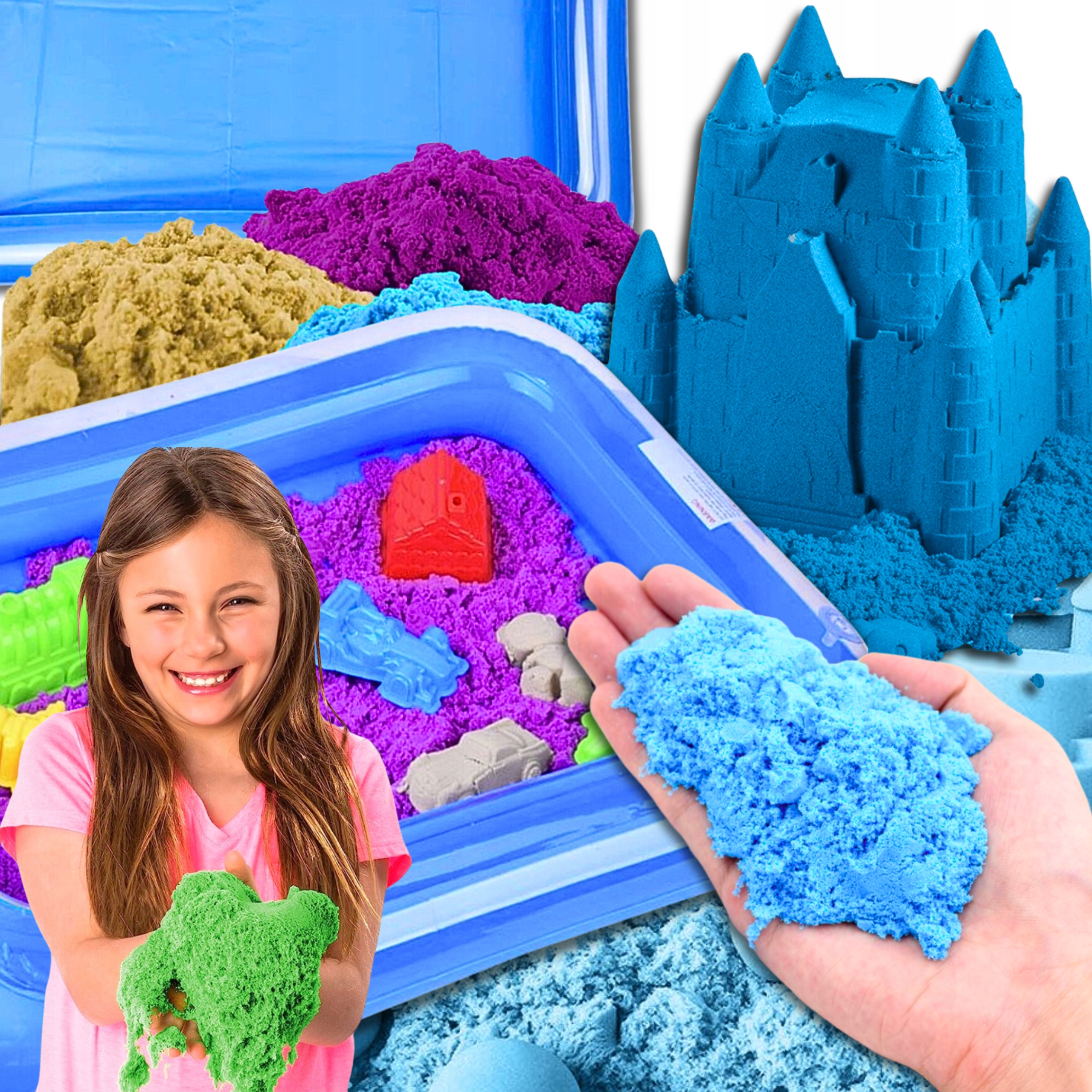 НАБІР КІНЕТИЧНОГО ПІСКУ 3 кг + ФОРМИ ДЛЯ БАСЕЙНУ ШПАТУЛЬ НАСОС ПІСОЧНИЦЯ XXL