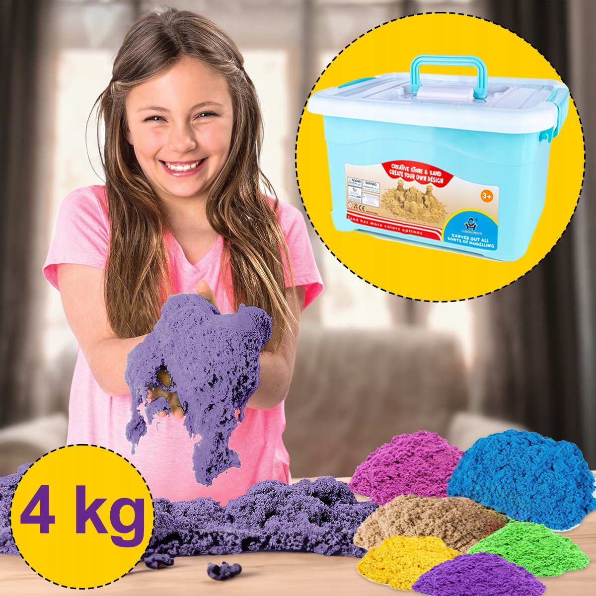 Кінетичний пісок 4 кг НАБІР ФОРМ ПІСОЧНИЦІ КРАН КРАН ЕКСКАВАТОР РОЛИК