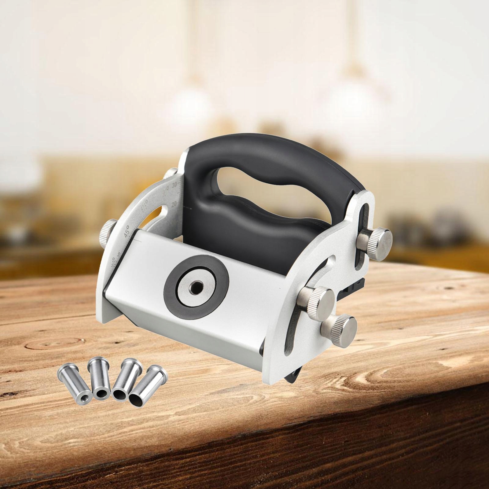 : Простий у використанні, легко змінювати різні кути 0° 90° 67,5° 45° 22,5° регульований, застосовний до будь-якого типу деревини, положення та кута Швидко та легко свердліть діагональні отвори, щоб приховати шурупи в дерев’яних меблях Деревообробка своїми руками інструменти та отвори для точних гвинтових з’єднань Виготовлений із міцного алюмінієвого блоку, не іржавіє та не тріскається, міцний і стійкий до стирання Ідеально підходить для домашніх проектів своїми руками або для професійного та загального використання в деревообробці Зробіть точне гвинтове з’єднання та посадіть гвинти, щоб досягти непомітності Дозволяє вам щоб легко приховати гвинти/кріпильні елементи