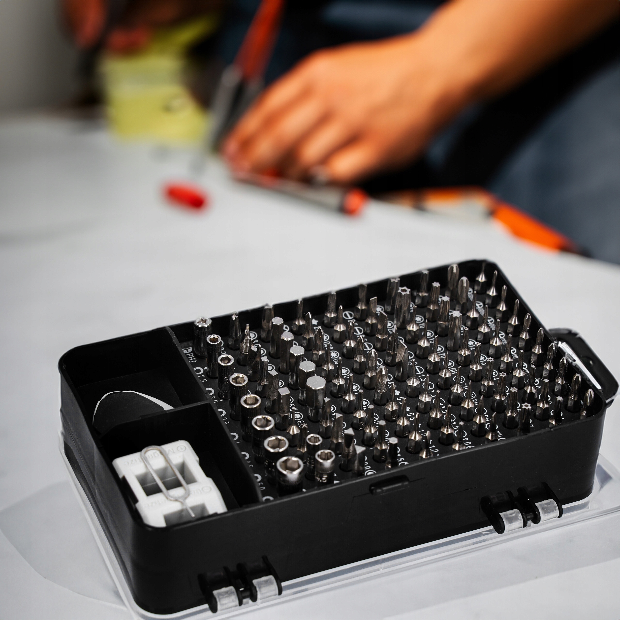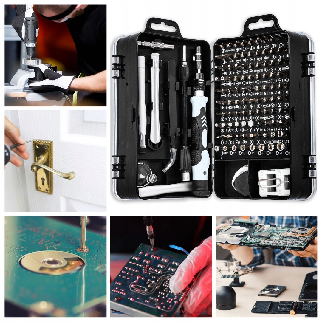 Додатковий набір Точні викрутки є обов'язковим для всіх, хто має справу з ремонтом електронних пристроїв. Складається з 115 елементів , набір дозволяє точні дії навіть у важких місцях, з повним спектром інструментів для пристроїв, настільки різноманітних, як смартфони, ноутбуки або побутові прилади.