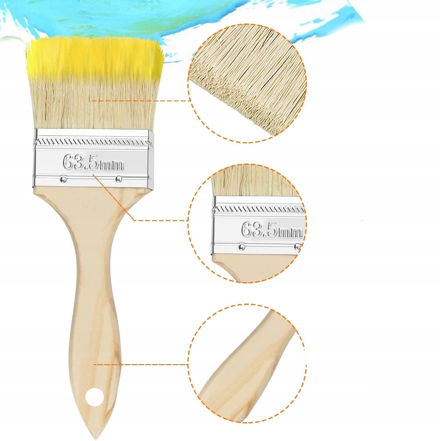 Щітки оснащені дерев'яними ручками та поліестеровою щетиною в металевому корпусі, що забезпечує довговічність і стійкість до пошкоджень. Крім того, на кінці кожної кисті є отвір для підвішування.