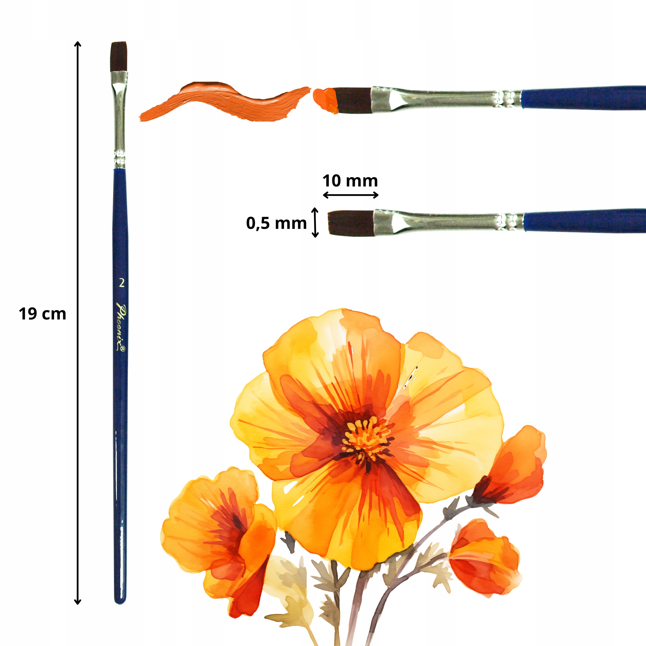 ☑️ Плоска кисть довжиною 19 см (розмір 2) чудово підходить для детальної роботи та точних ліній