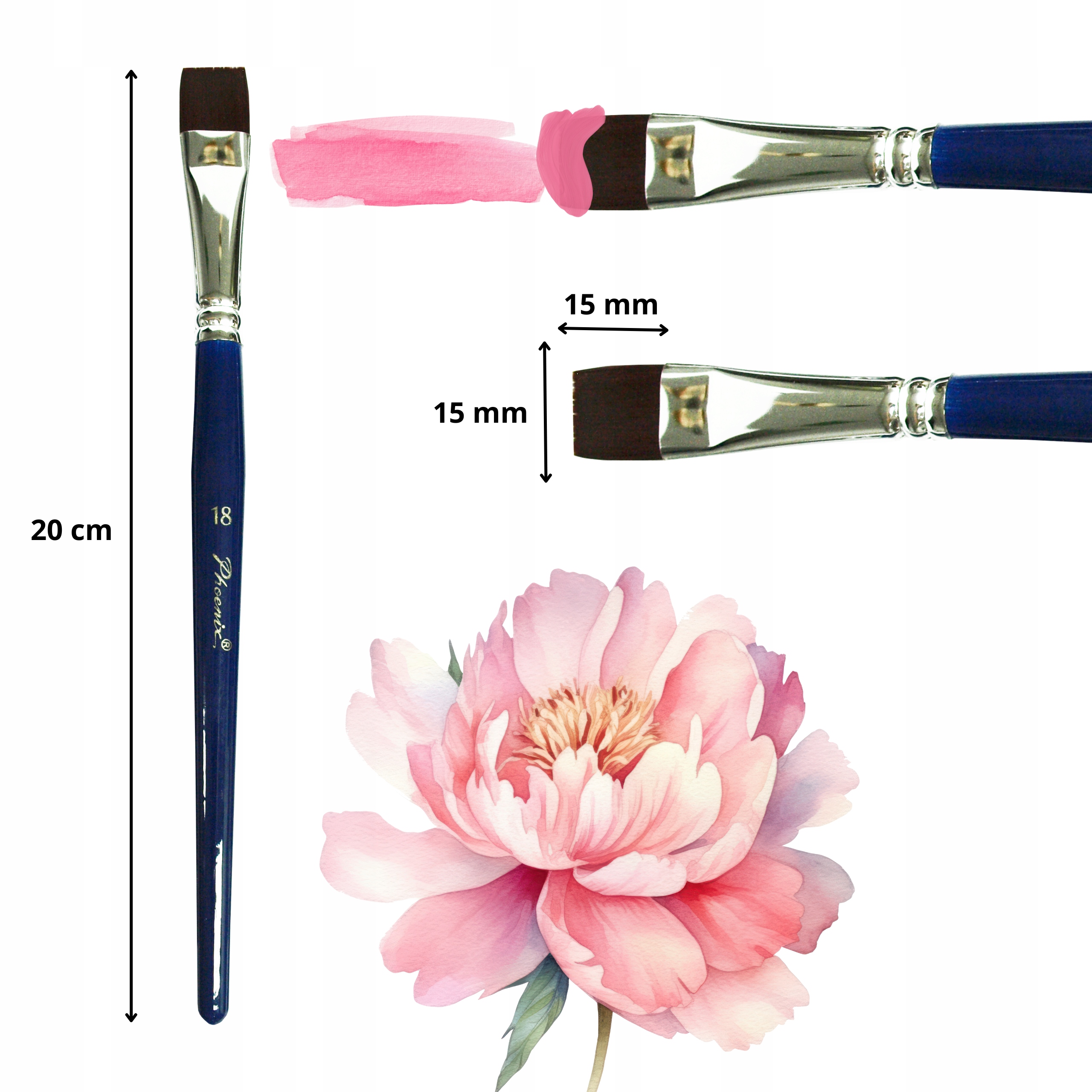 ☑️ Плоска кисть довжиною 20 см (розмір 18) чудово підходить для покриття великих площ поверхні та змішування кольорів