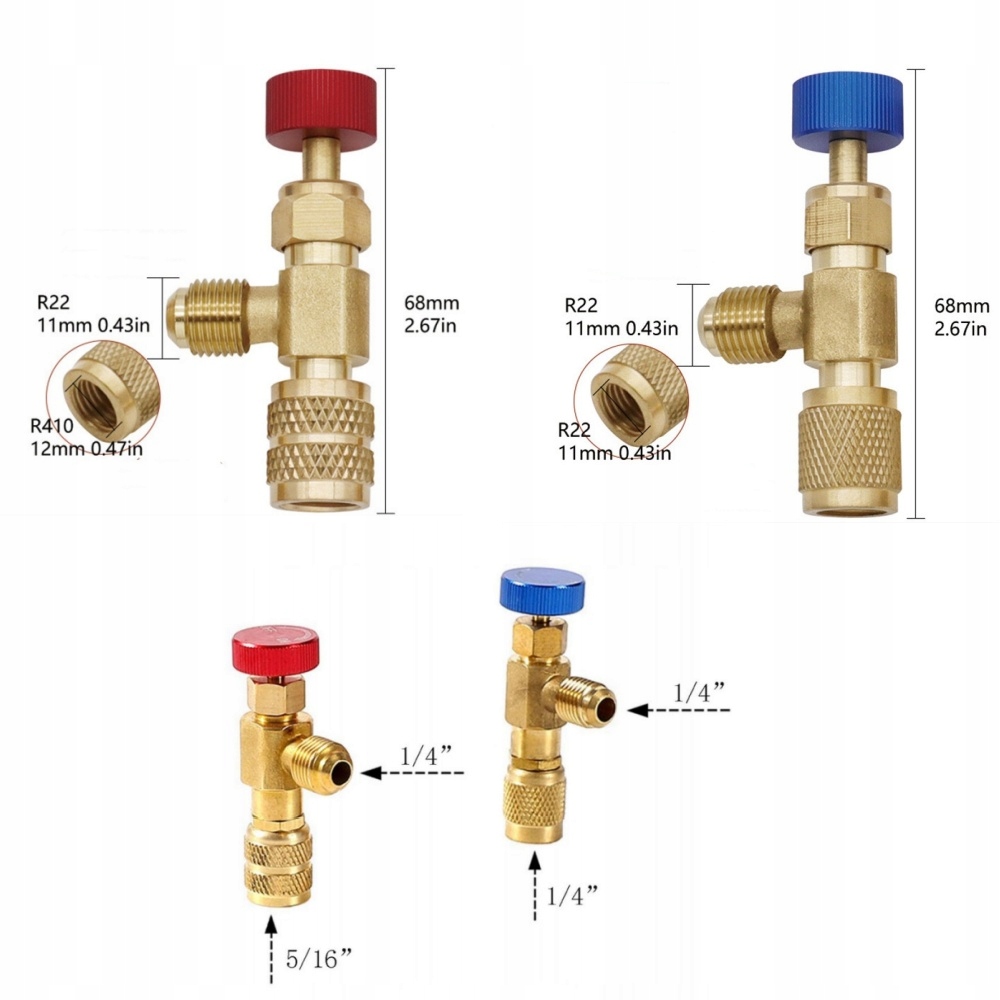 Набір містить 2 різні розміри клапана. R22 + R22 підходить для систем кондиціонування, наповнених холодоагентом r22 , r22 + r410a для систем кондиціонування, наповнених холодоагентом r22 або r410a .