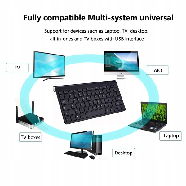 Клавіатура працює з усіма пристроями, які підтримують передавання через USB 2,4 ГГц
