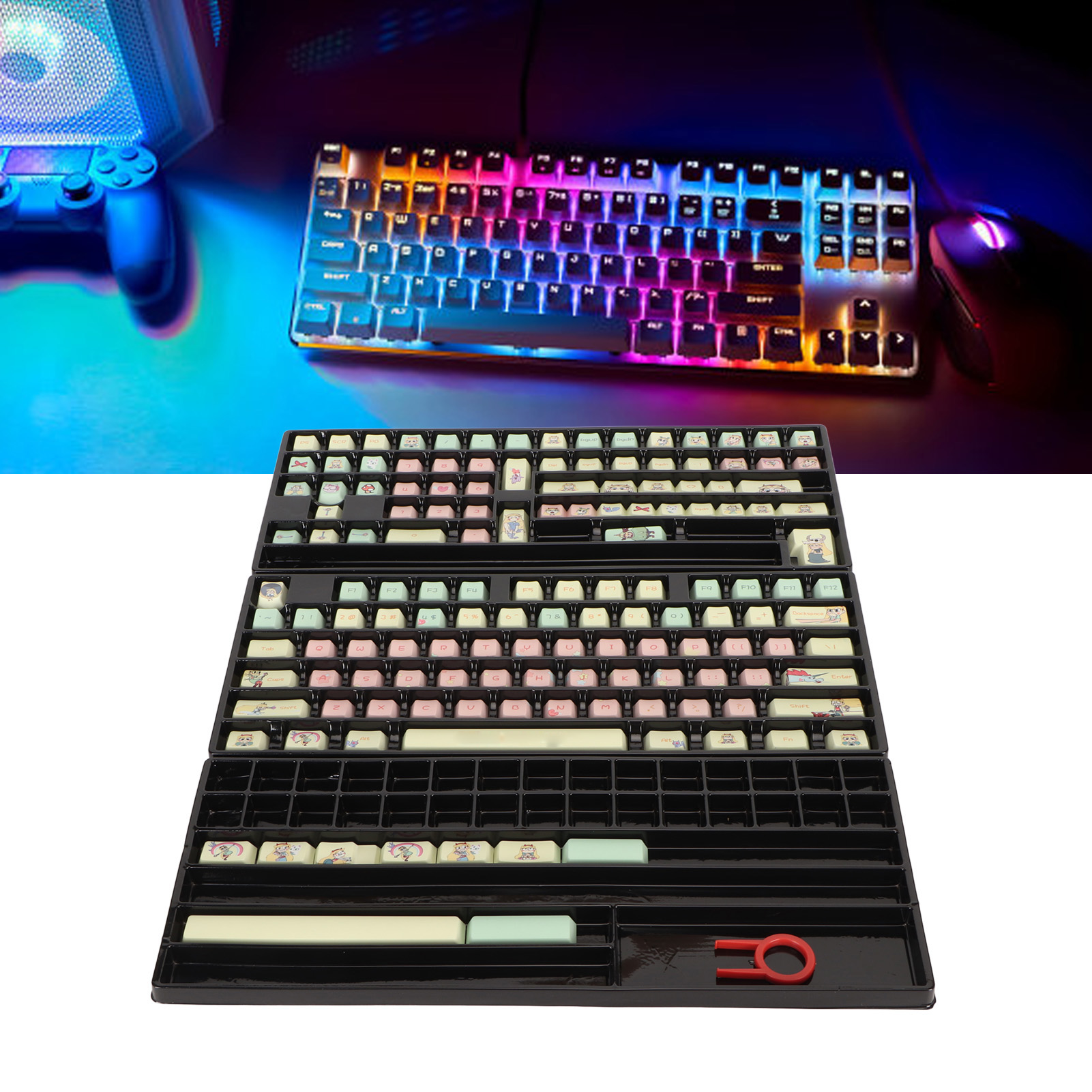 1. Перемикачі зі структурою MX: набір KeyCap розроблено з універсальною структурою MX, яка працює з більшістю перемикачів на ринку зі структурою MX та її клонами, такими як Gateron, Kailh, Cherry, Otemu тощо. Для різних розкладок доступна велика кількість різних розмірів клавіш, як-от 60%/75%/80%, TKL або повнорозмірна клавіатура.