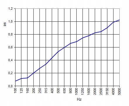 Нижче наведено лабораторну діаграму з тесту на поглинання звуку (це не моделювання) відповідно до EN ISO 354, EN 1793-1!