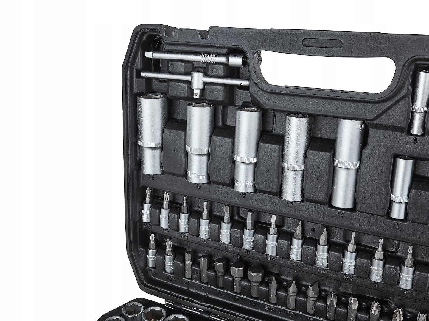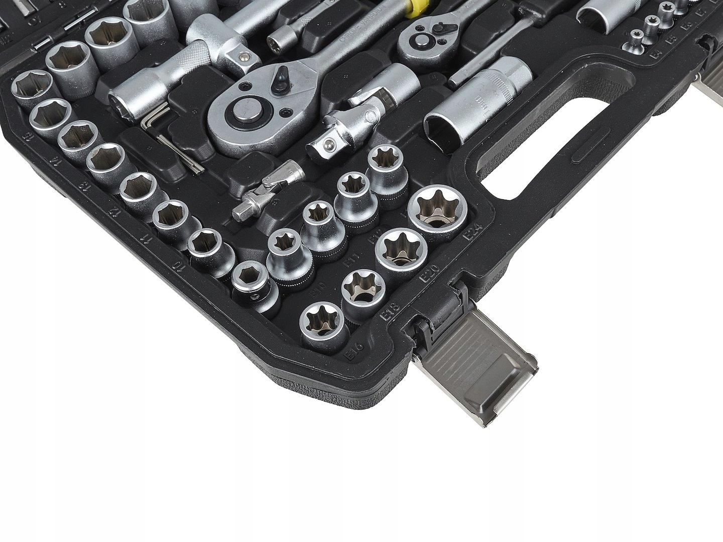 Набір із 108 предметів розеток і аксесуарів, які виправдають очікування як домашніх ентузіастів DIY, так і професійних механіків. Виготовлений з високоякісної хром-ванадієвої (CrV) інструментальної сталі, гарантує довговічність і стійкість до механічних пошкоджень.