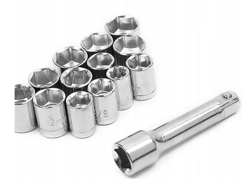 Набір складається з: 15 торцевих ключів від 4,5 до 16 мм, 14 торцевих ключів від 5/ Від 32 до 9/16, 3 гнізда зірочки розміром 1/4, 3/8, 5/16, 1 гніздо 13/16(21 мм)SP, 2 подовжувачі, гайковий ключ (15,24 см = 6 дюймів) і 2 взаємозамінних режими.