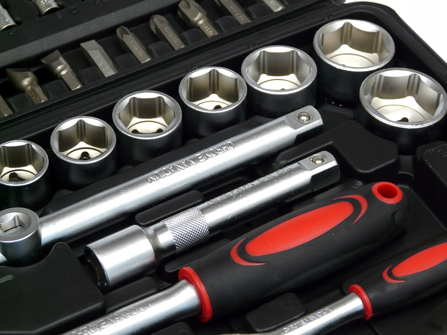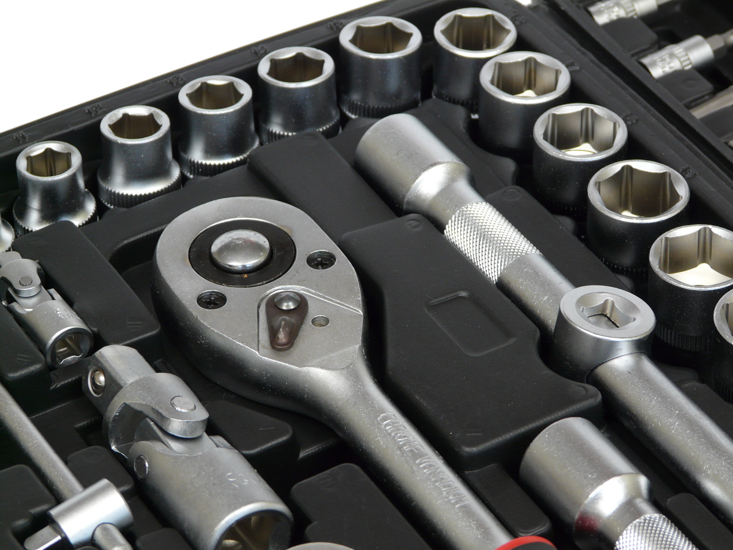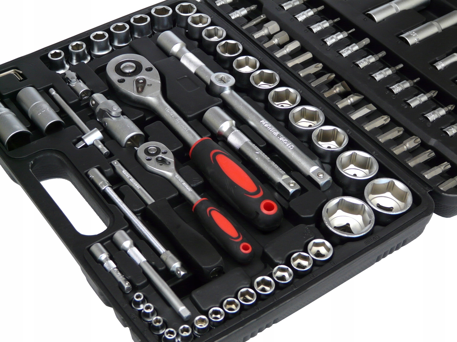 Набір із 108 ключів упакований у практичну м'яку валізу. Розетки характеризуються відмінною механічною міцністю і високою стійкістю до стирання, тріскачки мають МІЦНІ зубчасті механізми. Повний пакет головок забезпечить ідеальне пристосування гайкового ключа до певних потреб на будь-якому робочому місці.