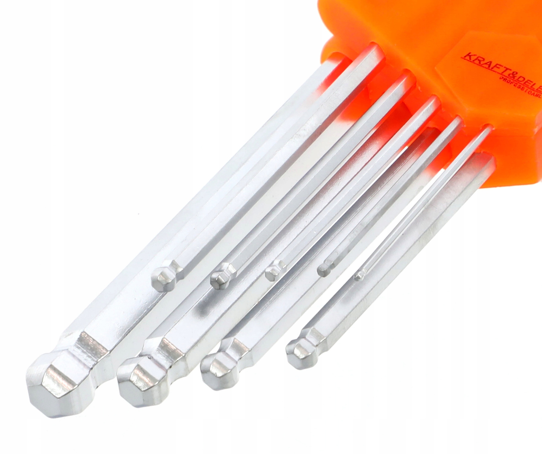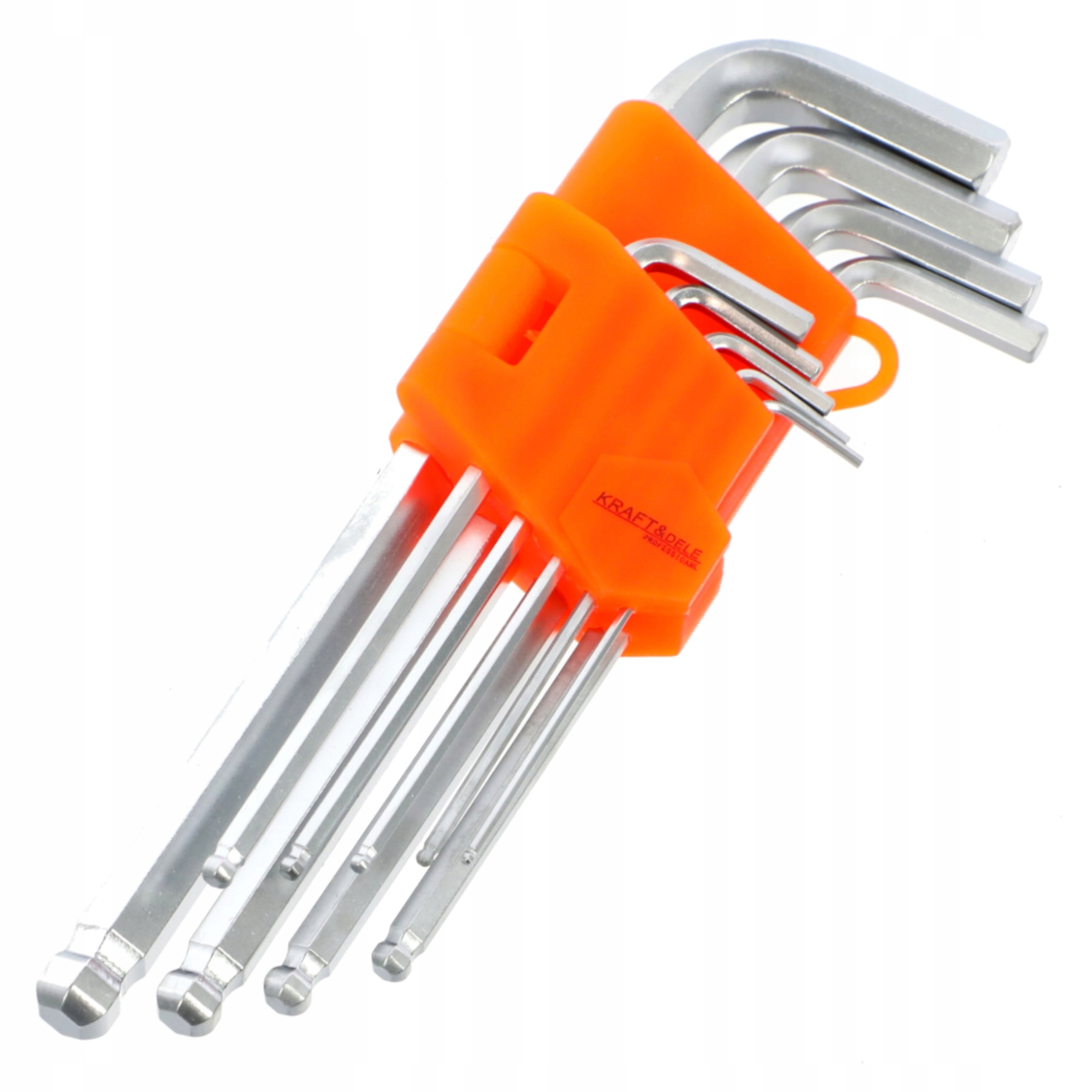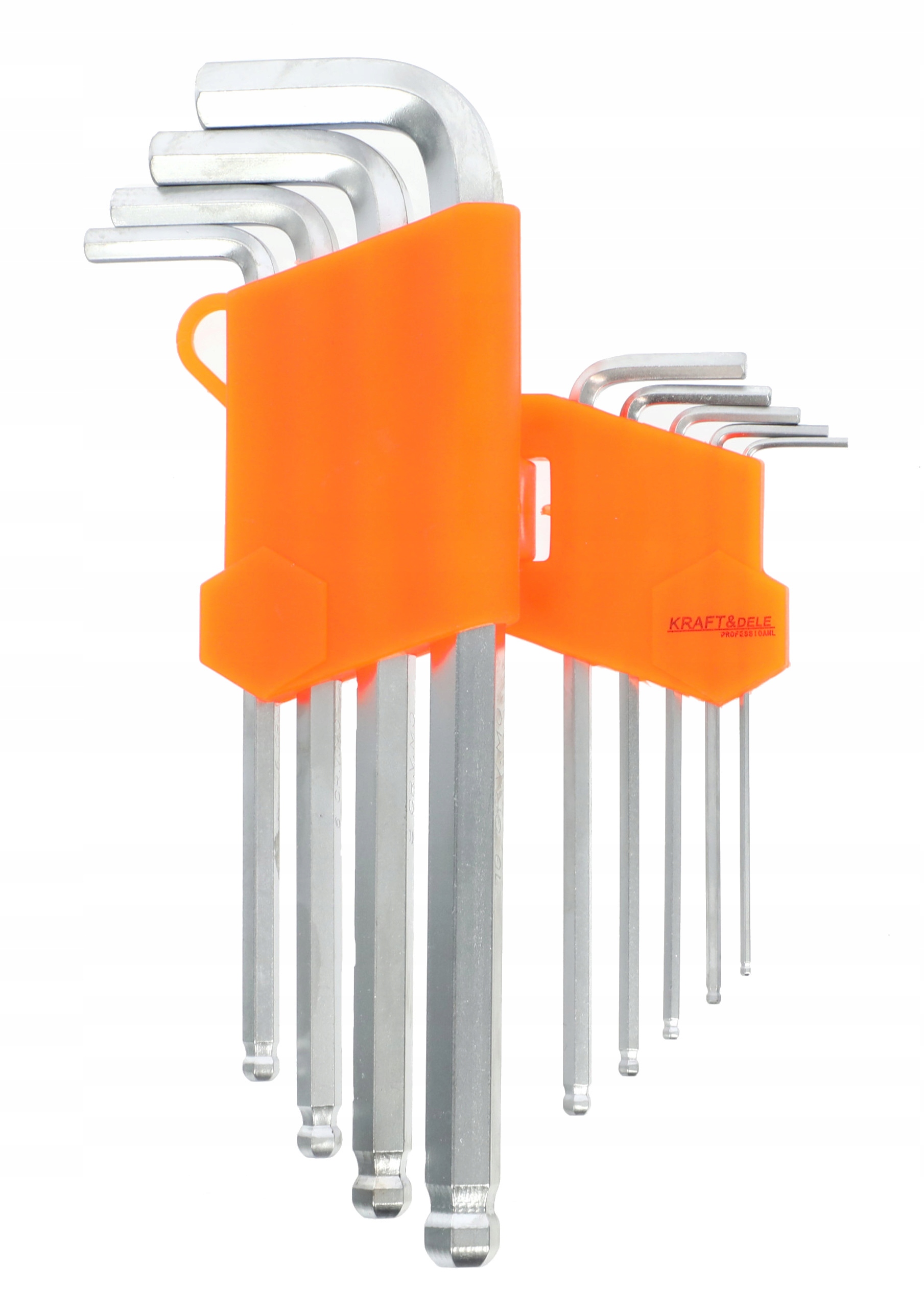У набір входить 9 шестигранних ключів розміром 1,5-10 мм. Ключі виготовлені з високоякісної хром-ванадієвої сталі CrV, яка є довговічною та гнучкою.