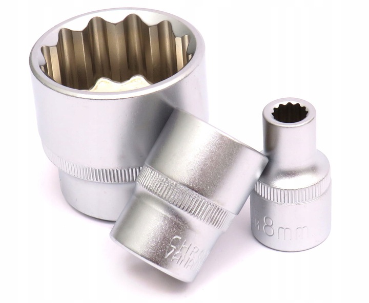 Набір включає 12-точкові розетки найпопулярніших розмірів від 8 мм b> до 36 мм. Вони виготовлені з високоякісної хром-ванадієвої (CrV) сталі.