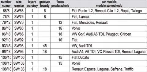 - Розмір: 66/6F , 76/8F, 76/12F, 86/16F, 86/18F, 92/10F, 93/45F, 96/18F, 106/15F, 108/15F, 108/18F