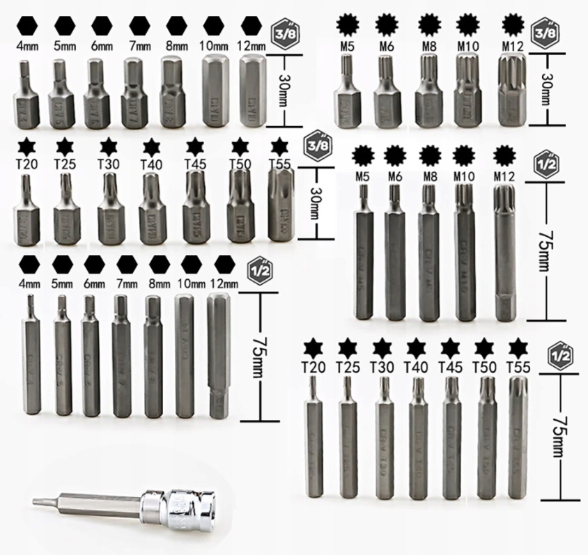 Набір torx, spline, hex bits, 40 elements у валізі. Наконечники виготовлені з високоякісної інструментальної сталі CR-V.