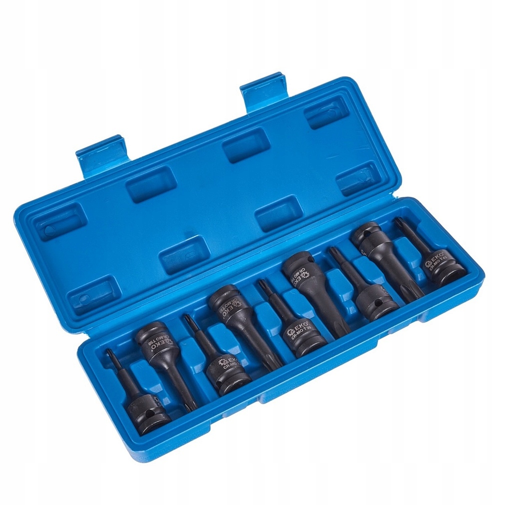 В набір входить 9шт. головки з хвостовикомрозмірівT20-T70 Головка 1/2" призначена для важкої роботи з ударними гайковими ключами з високим крутним моментом. Ідеально підходить для професійної автомобільної майстерні.