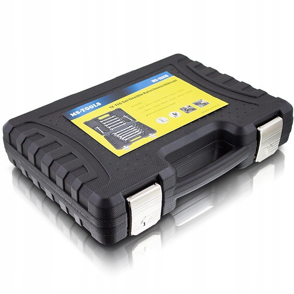 Набір із 12 гайкових ключів із тріскачкою ідеально підходить для роботи у важкодоступних місцях. Міцна хромованадієва сталь гарантує довговічність інструментів.