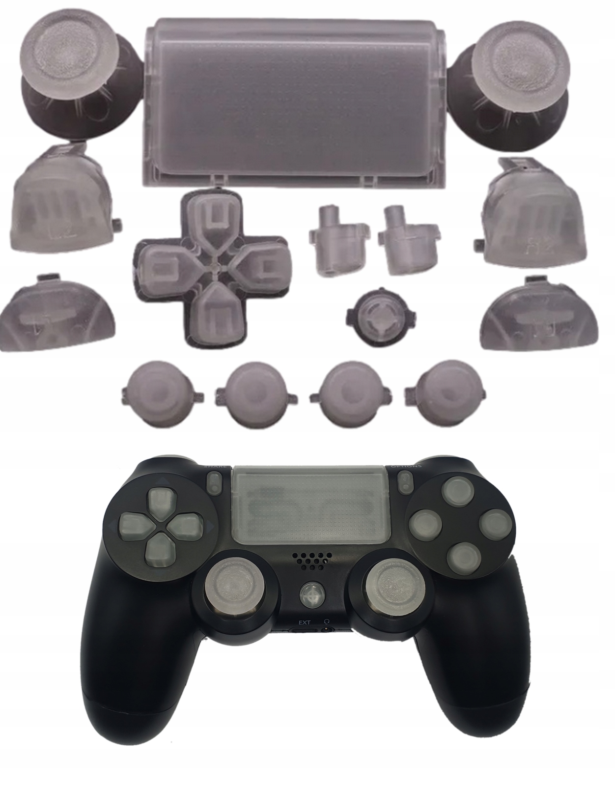 НАБІР КНОПОК ПРОЗОРИХ СВІТЛИВИХ КНОПОК + ГРИБКИ ТА ЧОХЛА ДЛЯ PS4 PAD 040 050 055