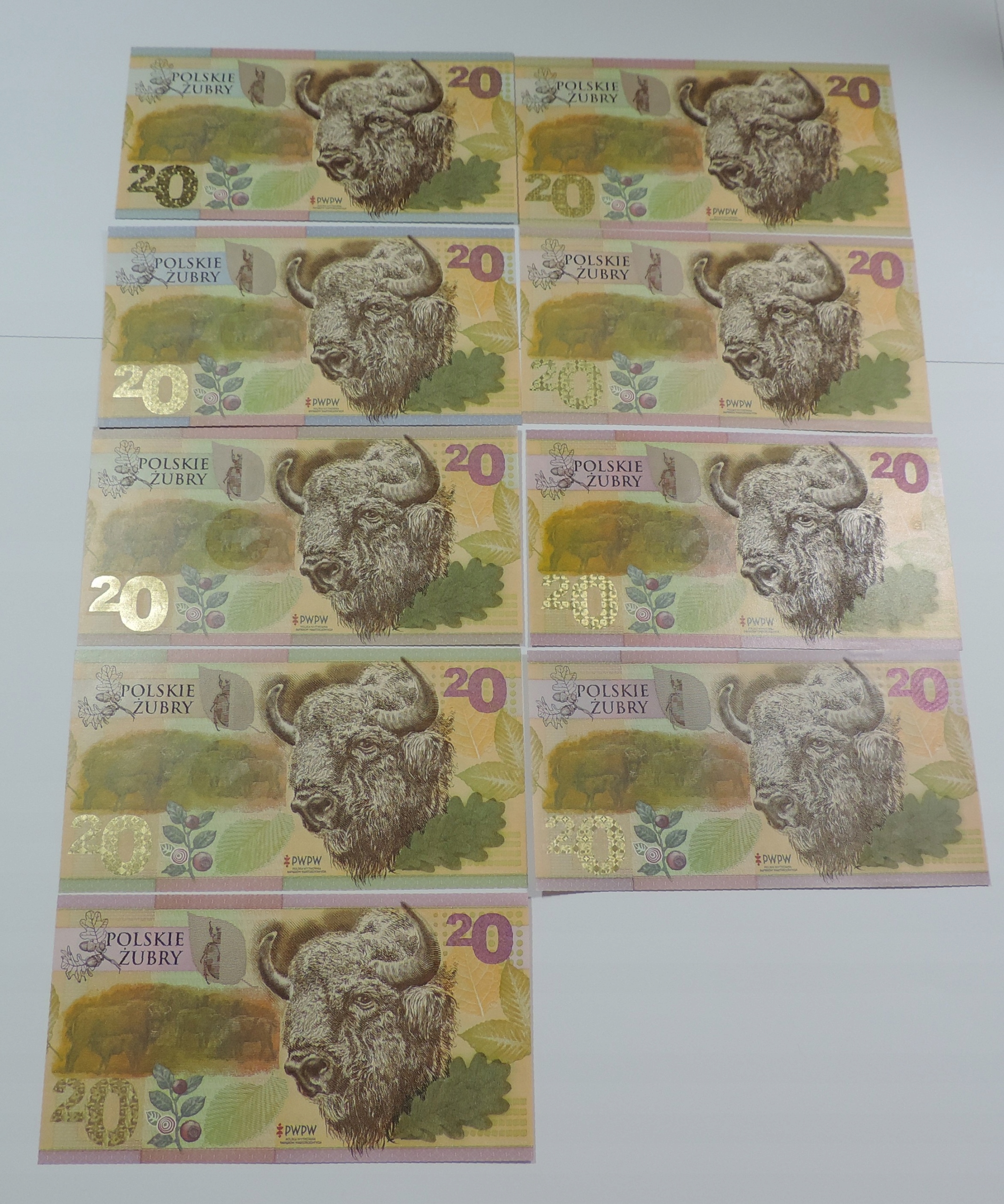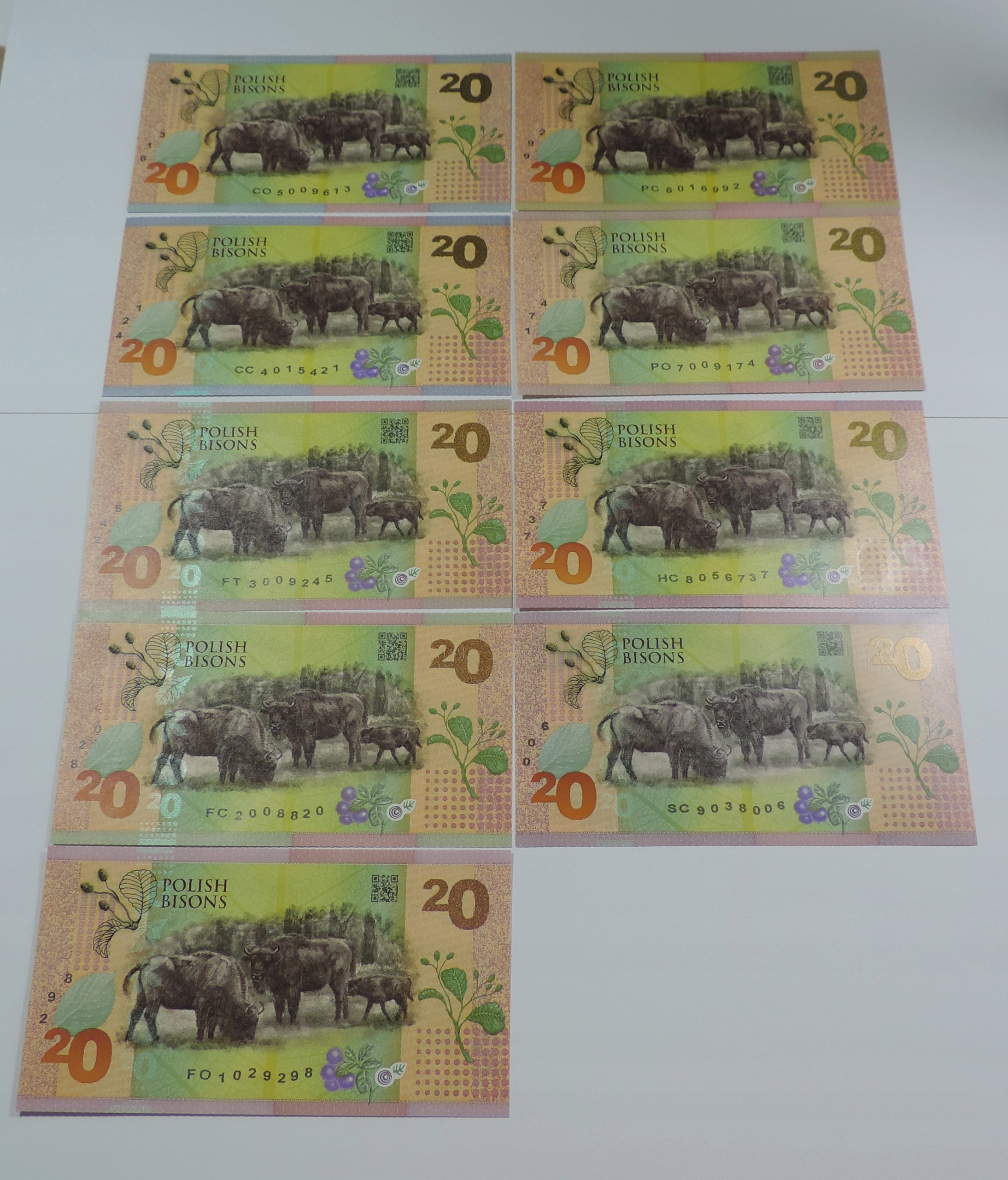 НАБІР КОЛЕКЦІЙНИХ БАНКНОТ 9x - ТЕСТ - PWPW - ŻUBR - UNC -OU1363