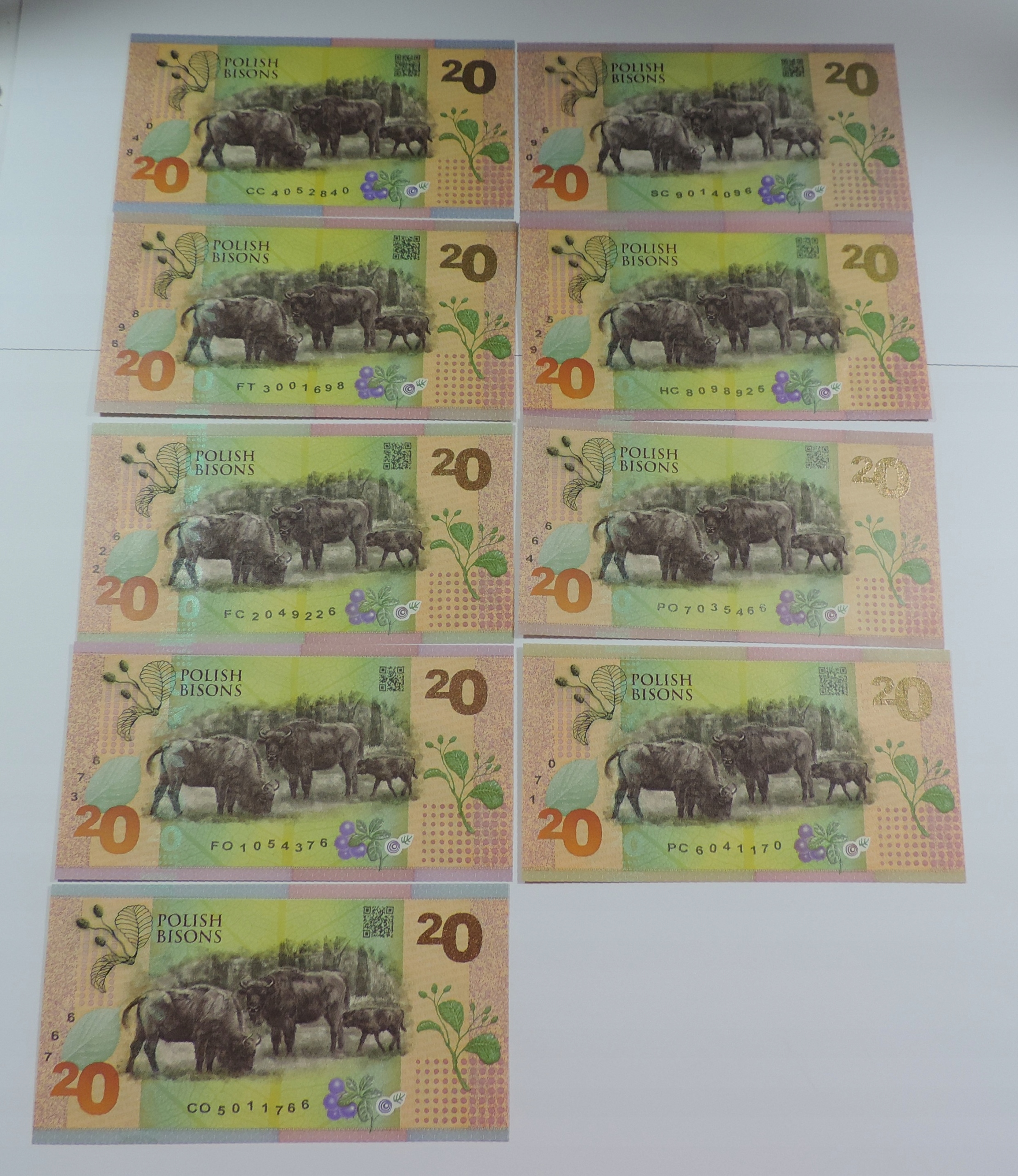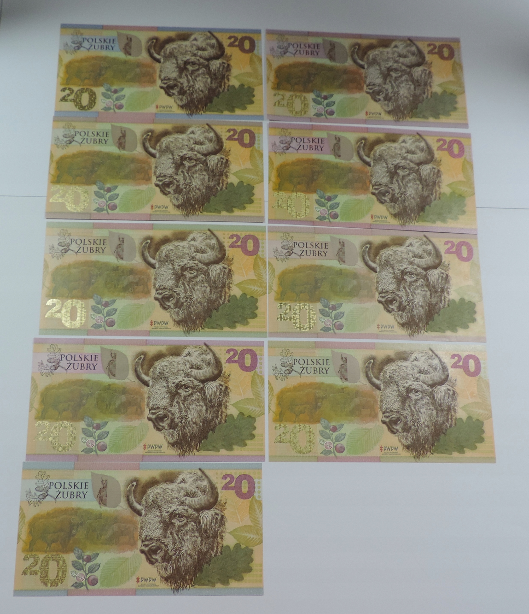 НАБІР КОЛЕКЦІЙНИХ БАНКНОТ 9x - ТЕСТ - PWPW - ŻUBR - UNC -OU1617