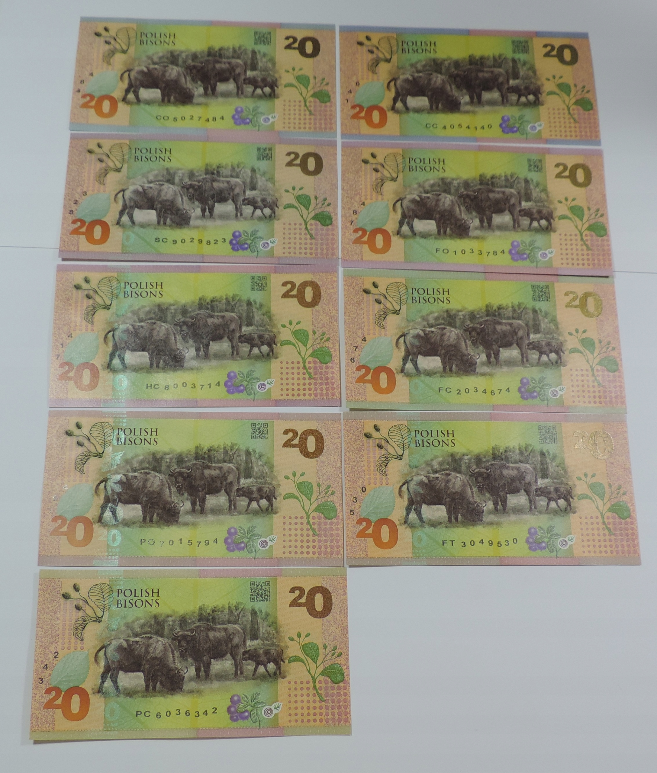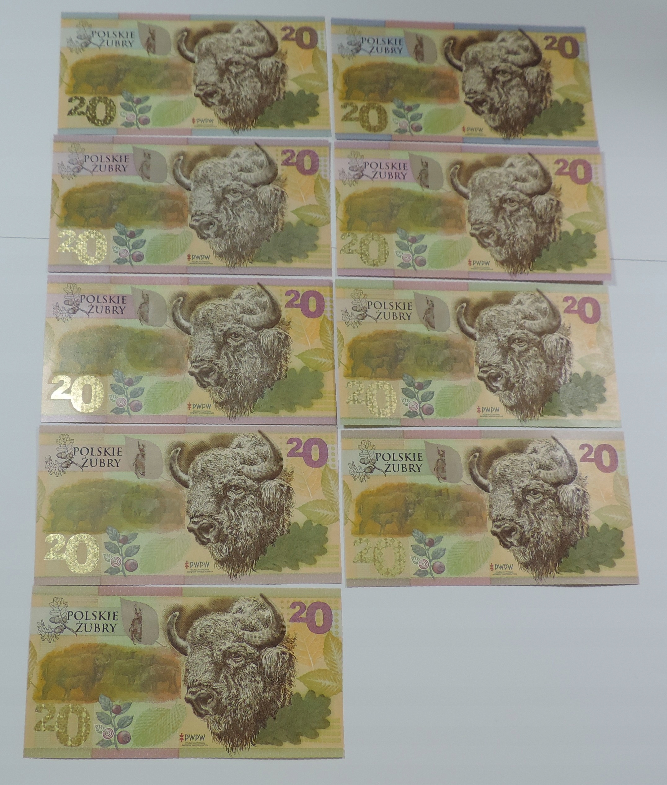 НАБІР КОЛЕКЦІЙНИХ БАНКНОТ 9x - ТЕСТ - PWPW - ŻUBR - UNC -OU1620
