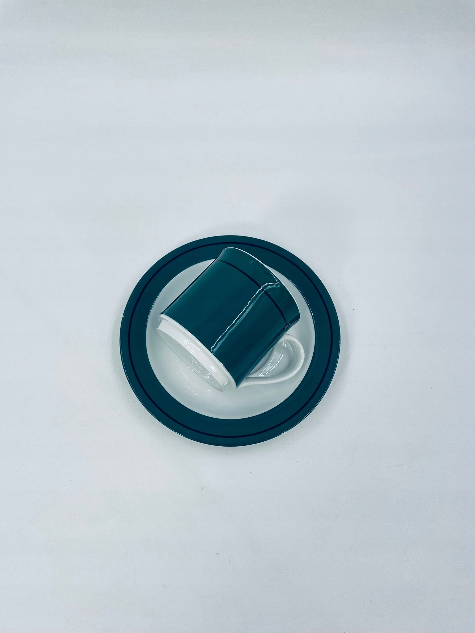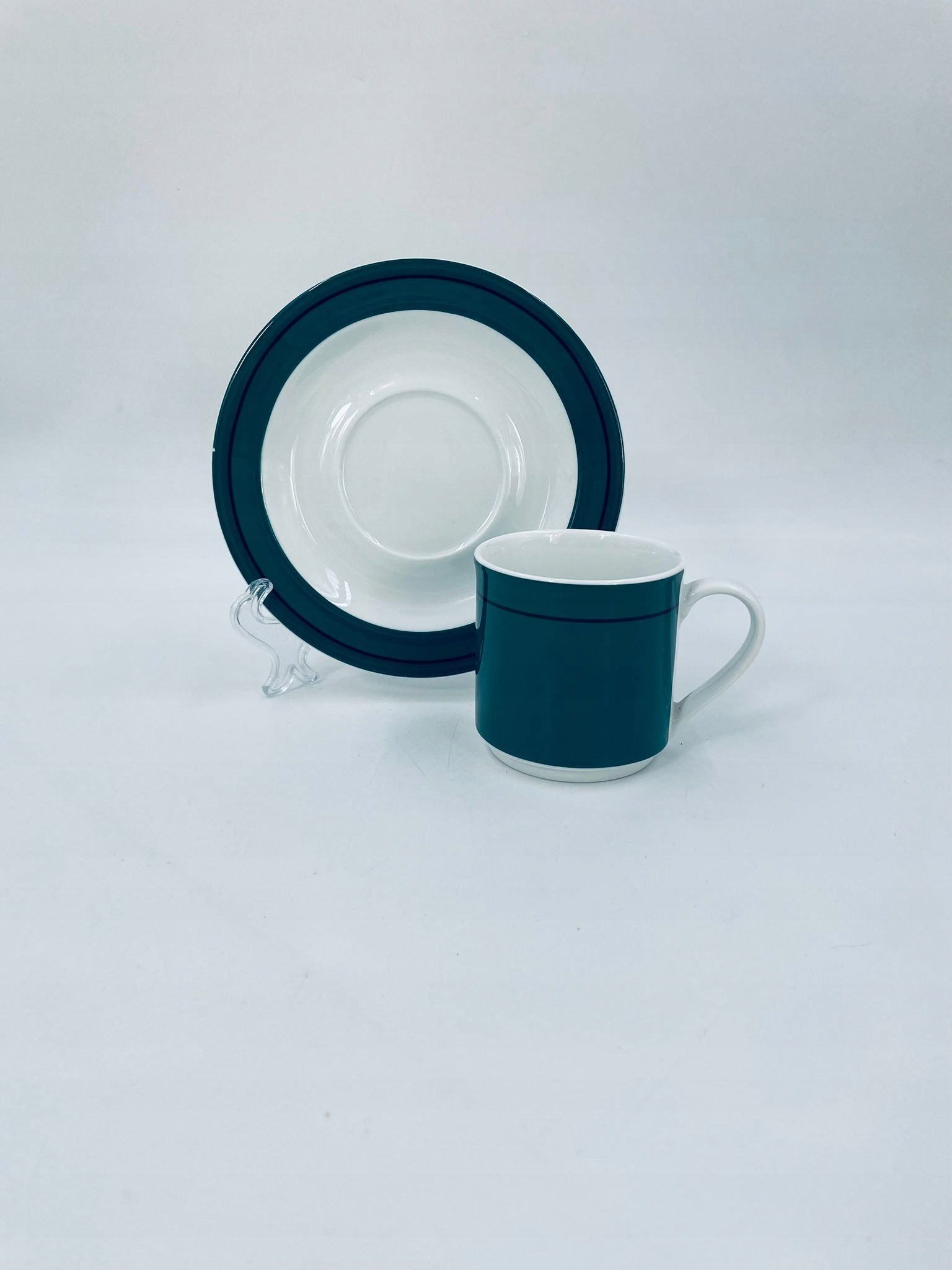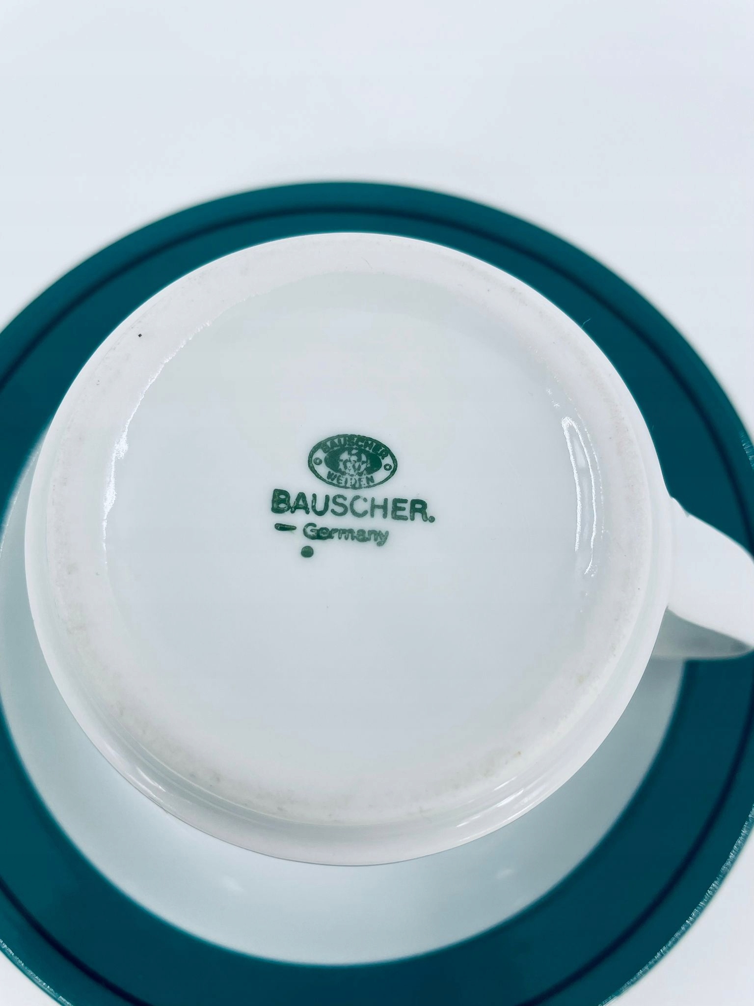 Колекційна чашка в наборі Bauscher Weiden з високоякісної білої порцеляни. Набір характеризується зеленим кольором з чорним обідком.