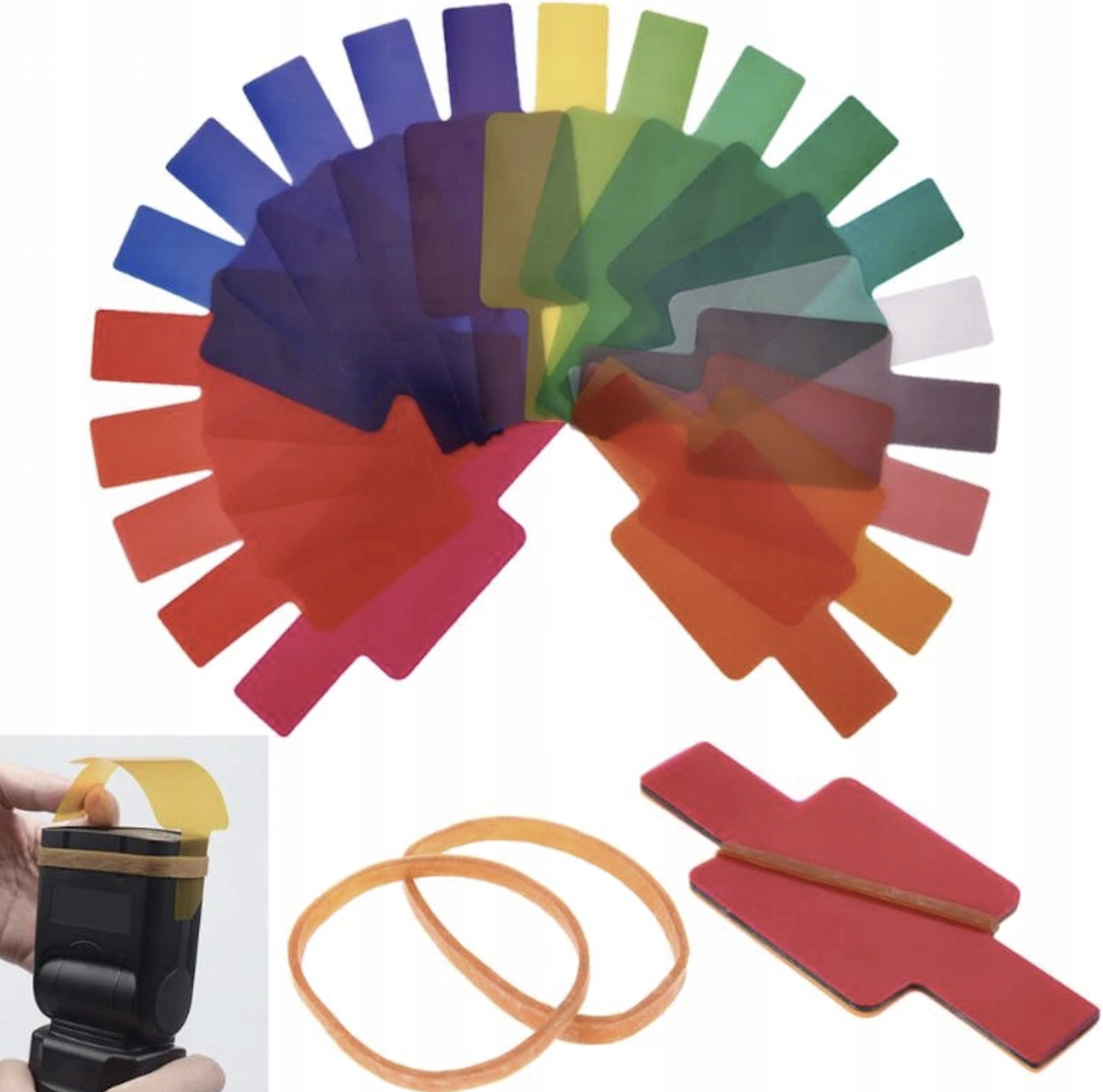 Оживіть свої фотографії за допомогою кольорових спалахових фільтрів! Наш набір із 20 кольорових фільтрів дозволить вам досягти унікальних світлових ефектів, які зроблять ваші фотографії ще цікавішими та унікальнішими. Фільтри прості у використанні та підходять до більшості моделей спалахів. Замовляйте зараз і дозвольте своїй творчості розкритися на повну!