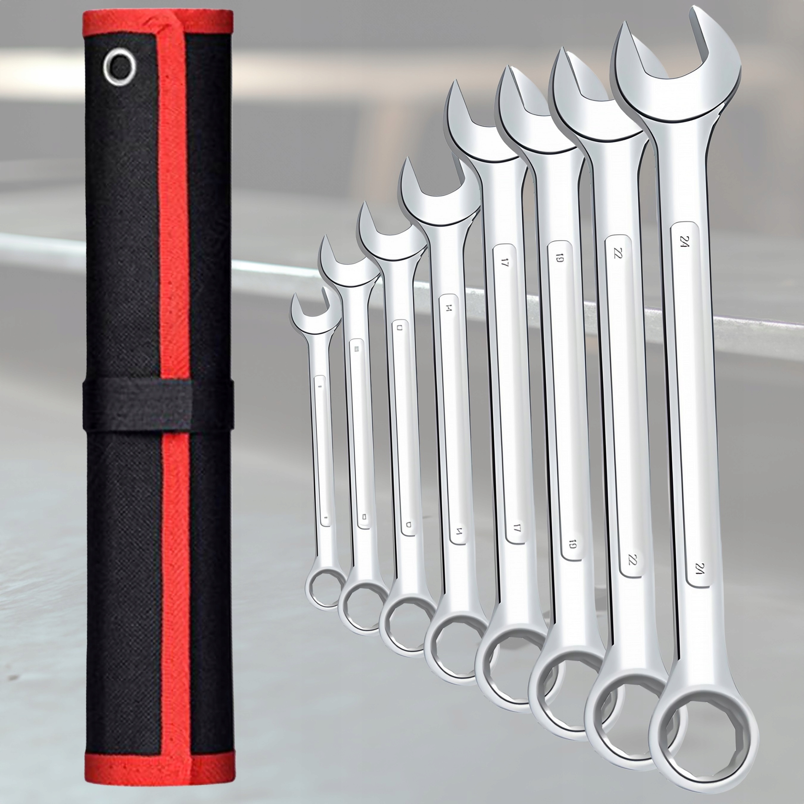 КОМПОНЕНТИ КІЛЬЦЕВИХ ГАЙКОВИХ КЛЮЧІВ 8-24 ММ ПЛОСКИЙ НАБІР 8 ШТУКІВ